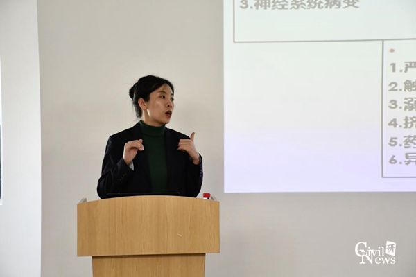 由来自成都市第二人民医院急诊科的谢妍霞、江雯、黄丹、李谨四位医生给在场教职工带来急救知识的普及,包括心肺复苏、海姆利克法等急救方法。