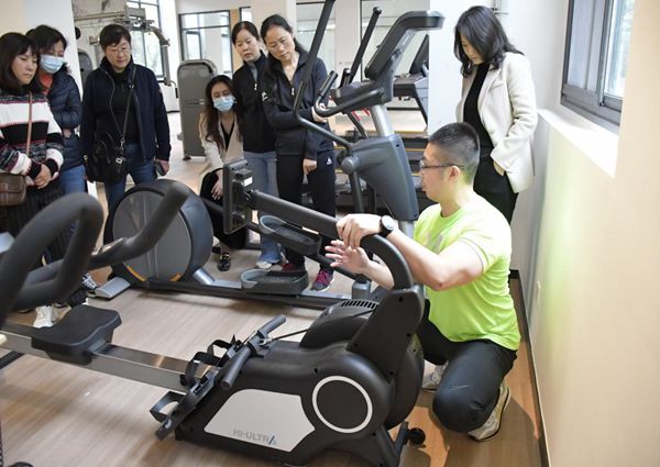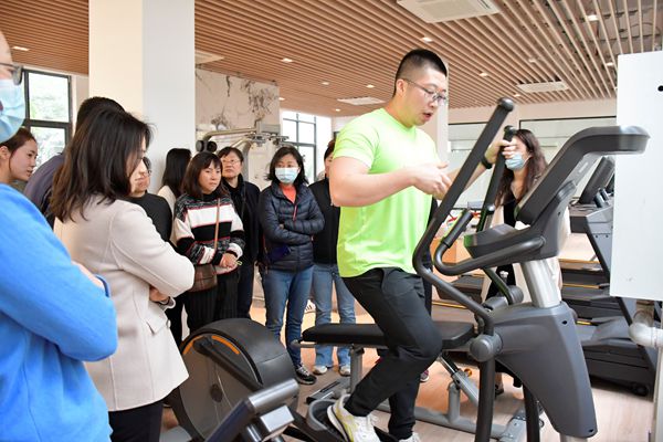为丰富学院教职工文化生活,切实关心教职工身心健康以及贯彻“全民健身”的理念,学院工会购置跑步机、椭圆机、划船器、动感单车、健身训练器、乒乓球桌等一批健身器材,建设jn江南教职工健身中心,并于2023年3月30日15:00-16:00进行健身器械使用培训,邀请了专业健身教练曾教练现场指导大家使用健身器材、锻炼身体。