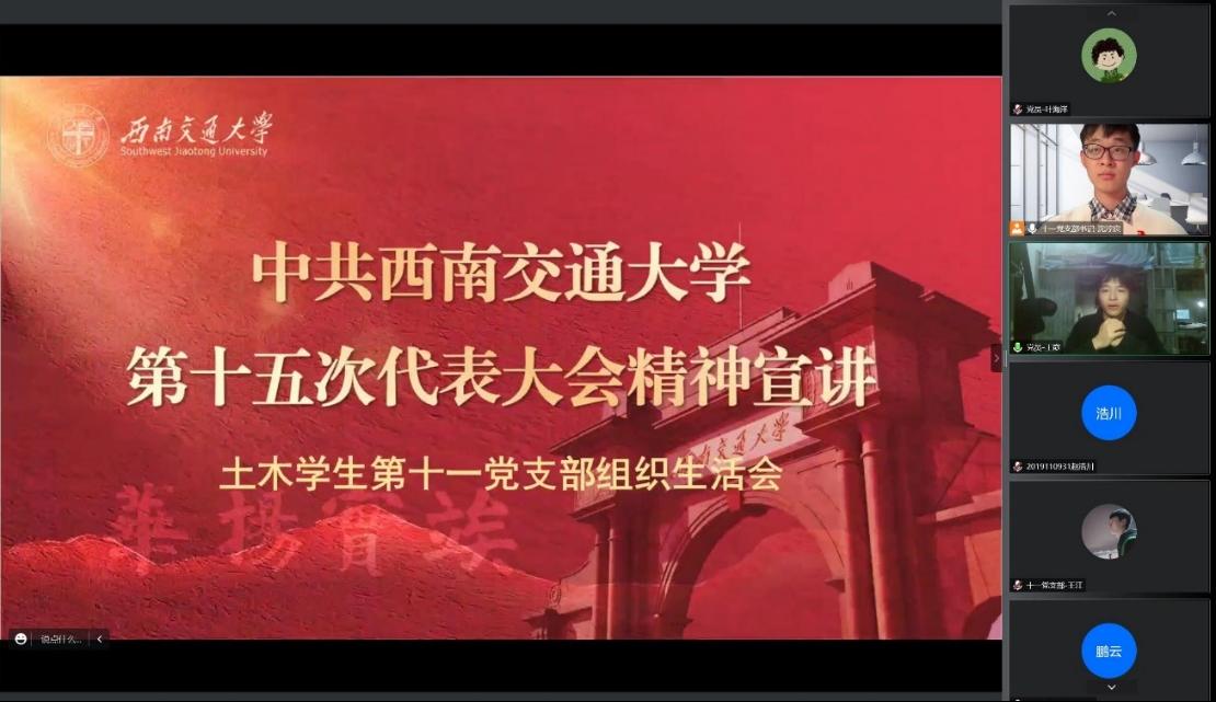 在学习过程中,以王彦、董璇同志为代表的土木员工第十一党支部党员发表了自己的学习心得。通过分享心得体会,各位同志进一步加深了对大会精神的深刻理解,加强了对大会内容的精准把握。只有统一思想、凝聚共识、振奋精神,全校师生劲往一处使,才能不断谱写中华民族伟大复兴的西南交大新篇章。
