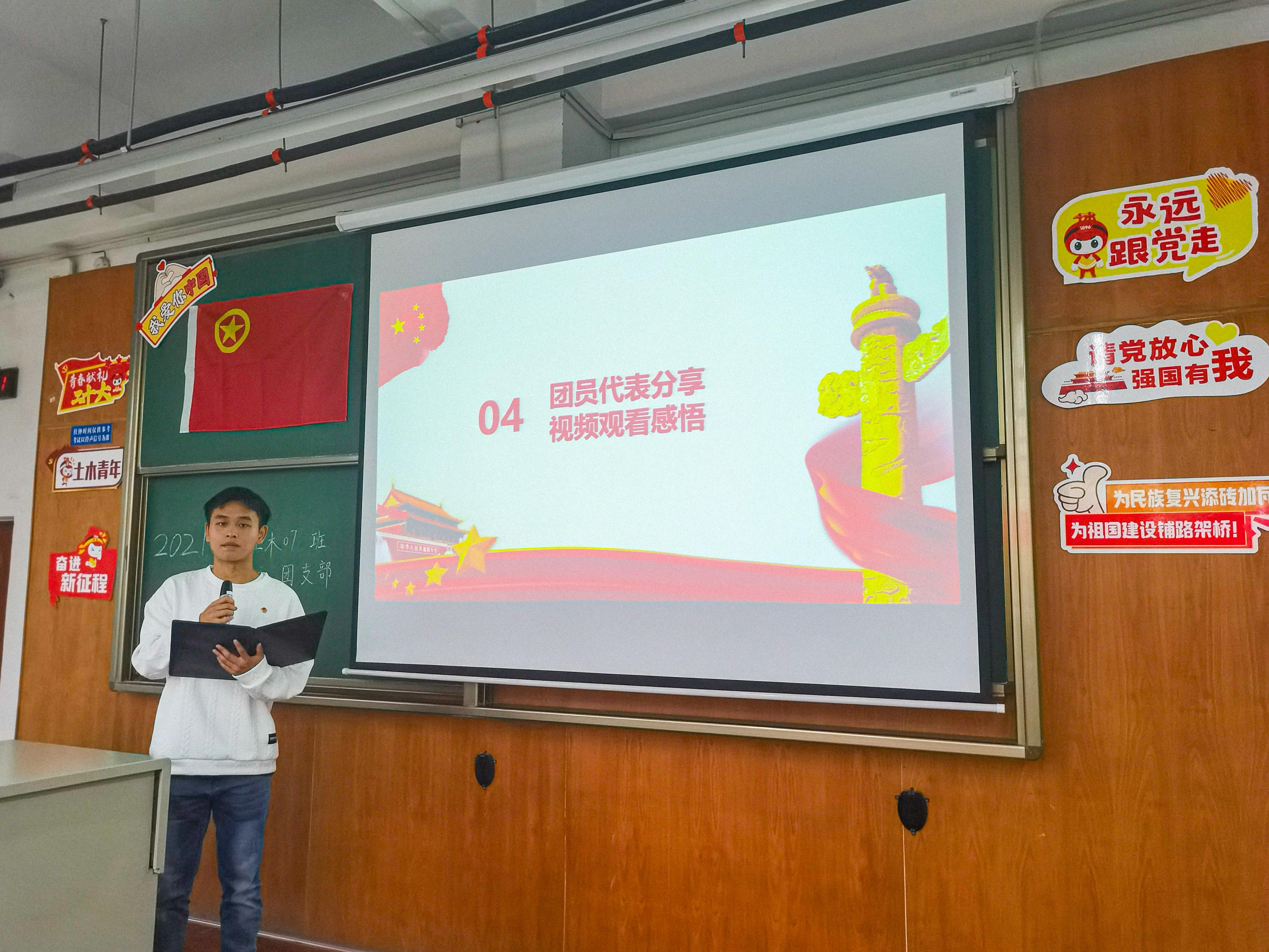 10月16日上午10时,中国共产党第二十次全国代表大会在北京召开。为持续深化党的百年奋斗重大成就和历史经验的学习,深刻感悟新时代的伟大成就,土木工程2021级7班团支部于10月20日在X4156教室开展了“喜迎二十大 永远跟党走 奋进新征程”主题团日活动。团支部全体成员27人在团委副书记付真珍老师、辅导员谢欣岑老师的带领下,组织开展了此次活动,活动时长约100分钟。