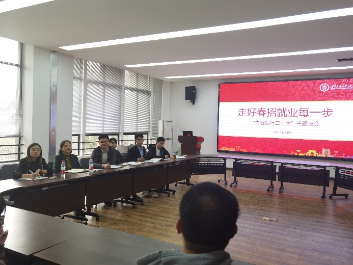 jn江南就业工作专项负责人李裕老师,jn江南2019级辅导员李雯、李江怀、薛人铭、李阳阳老师及部分2019级本科生出席此次班会。