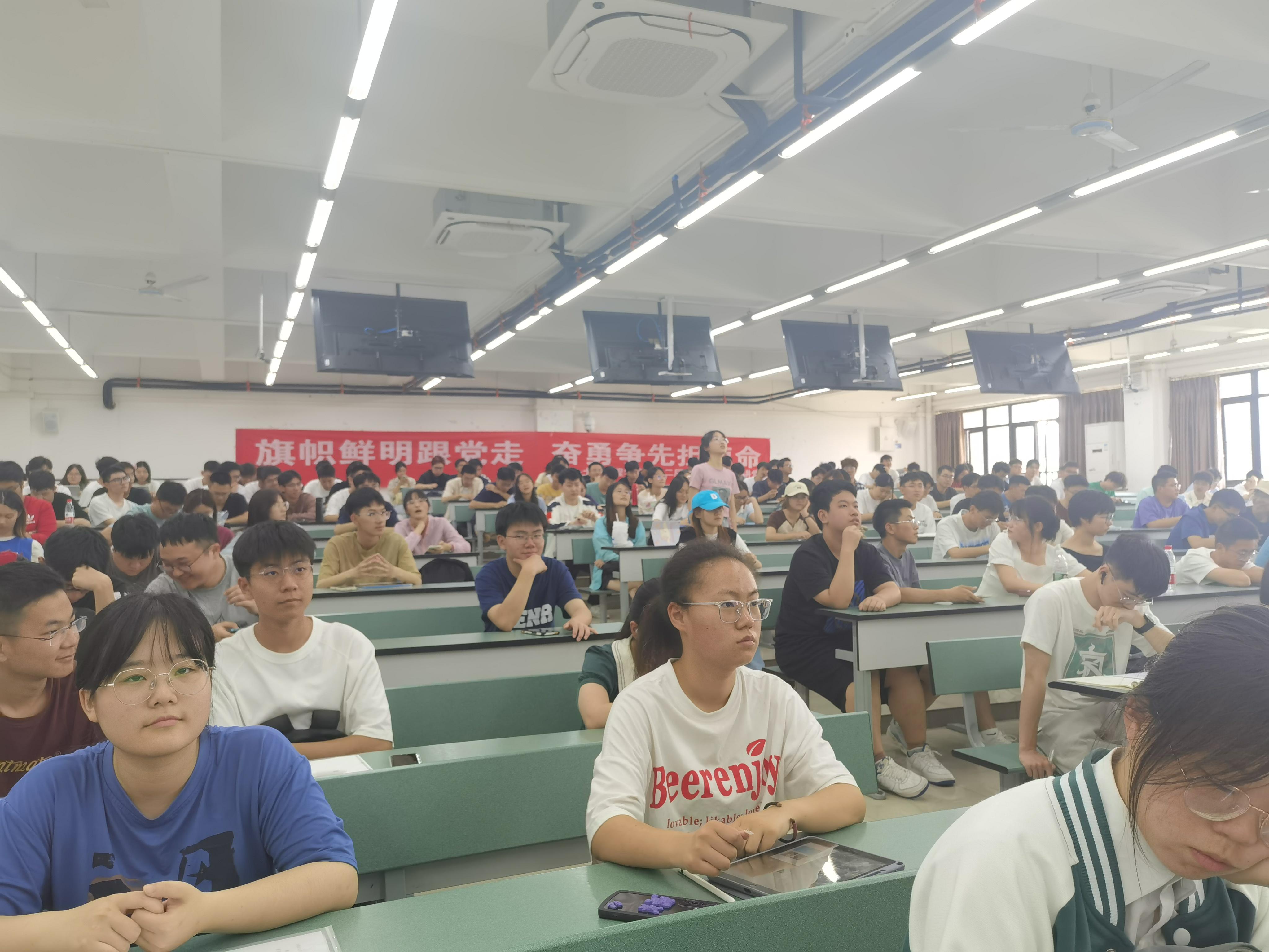最后播放了视频《如何快速变老》,通过用反话的方式,去号召青年享受年轻,不再颓废,做一个有价值的当代青年,同时呼吁大家以理想信念之光照亮中国式现代化新征程;以责任担当之心推进中国式现代化新征程;以专业知识之力助力中国式现代化新征程;以实践才干之能领跑中国式现代化新征程。