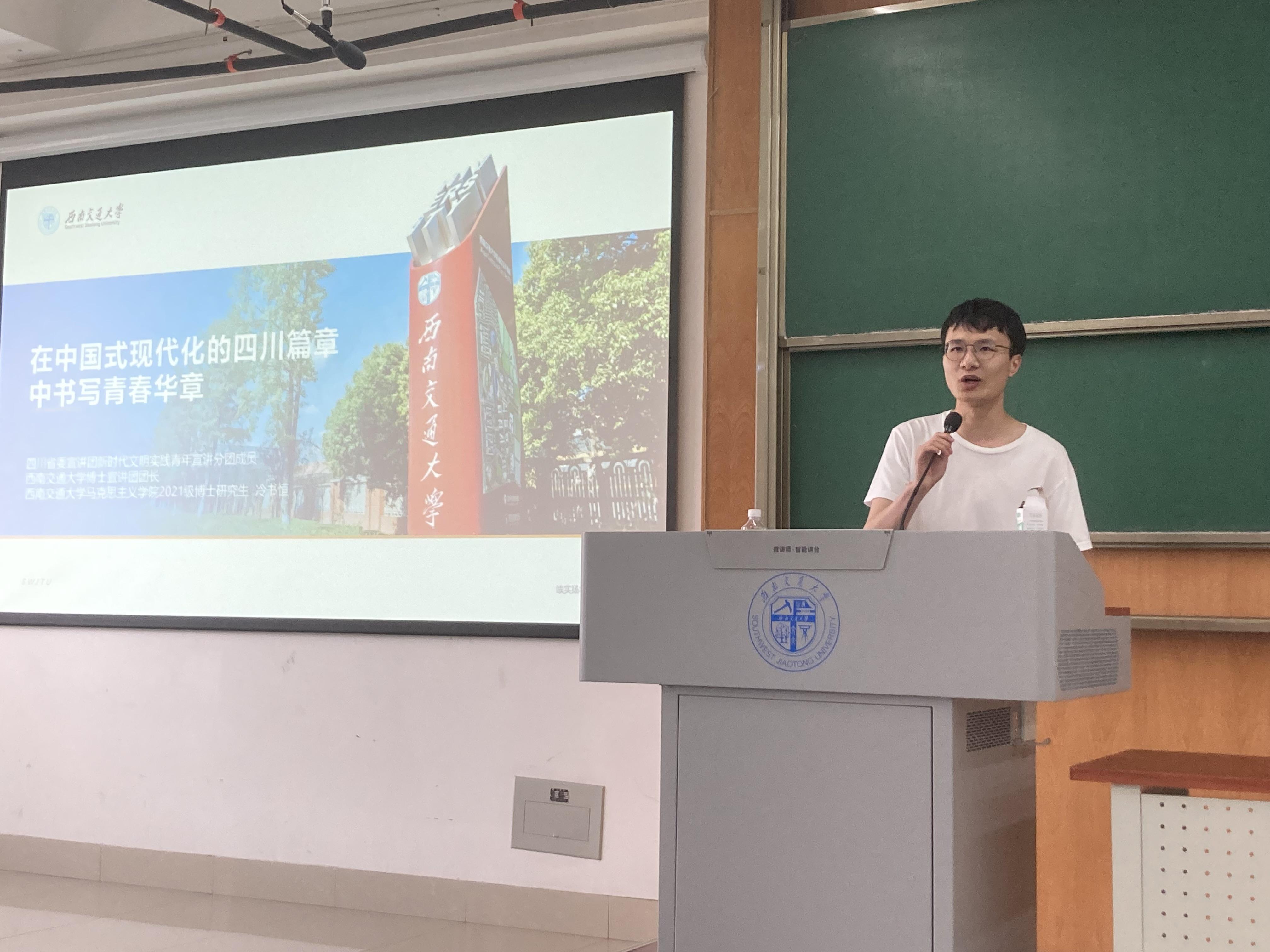 为深入贯彻落实党的二十大精神,2023年5月4日15:50,jn江南2023-01期党员发展对象在X4359开展了jn江南第十二届红土党课大讲堂(三)。公司博士宣讲团成员——马克思主义学院冷书恒博士发表了“在中国式现代化的四川篇章中书写青春华章”为主题的宣讲。