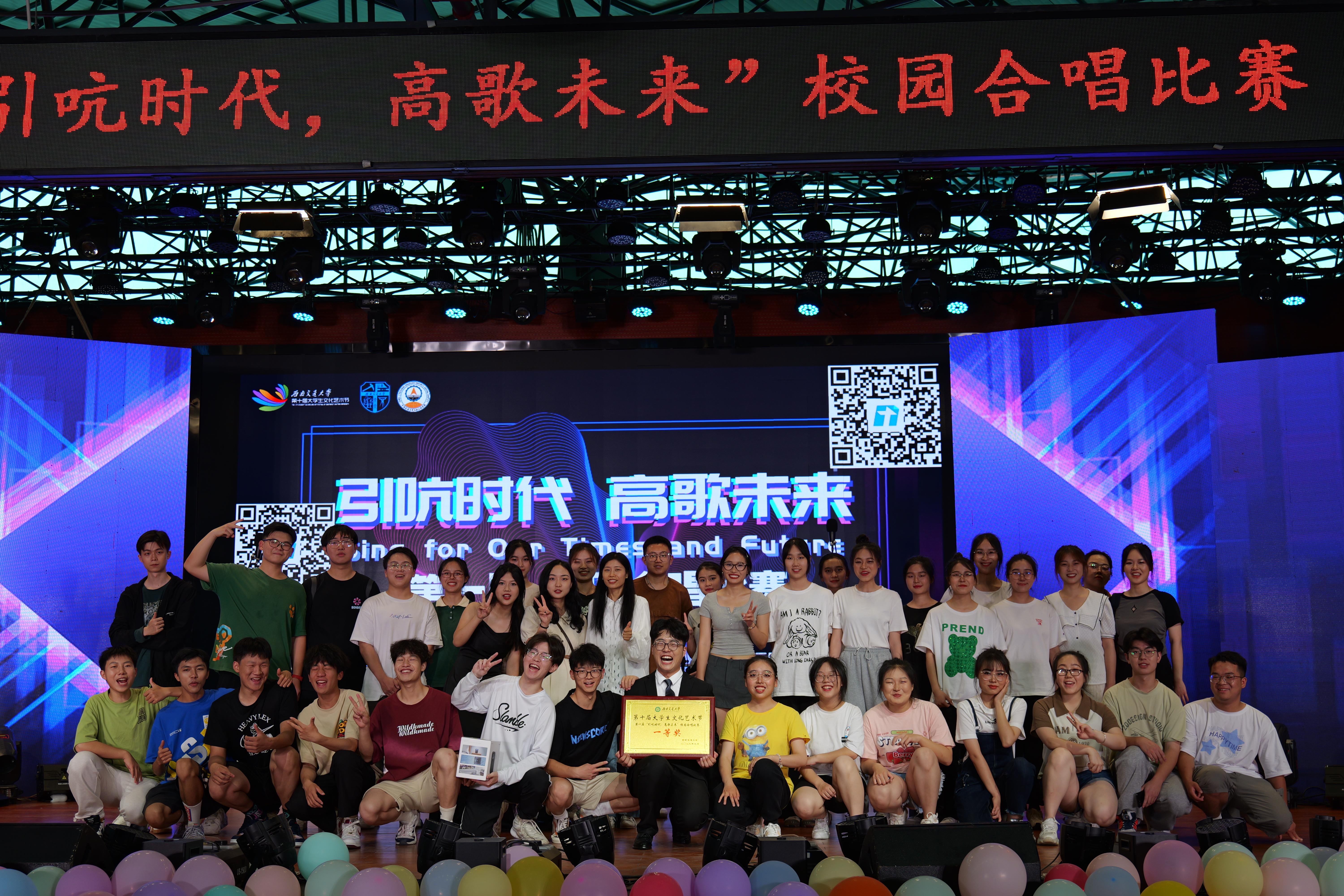 2023年5月21日,第一届“引吭时代,高歌未来”校园合唱比赛落下帷幕。本次大赛主题为“厚植家国情怀,涵养进取品格”,旨在于贯彻落实习近平新时代中国特色社会主义思想,深入学习党的二十大精神,繁荣校园文化建设,实现以美育人、以美化人、以美培元,提升团队合作精神,推动校园精神文明建设。在本次比赛中,由jn江南2022级造价01班、02班组成的合唱团体经层层选拔晋级决赛,并在决赛中凭借气势磅礴的合唱曲目《如愿》《我爱你中国》荣获冠军!