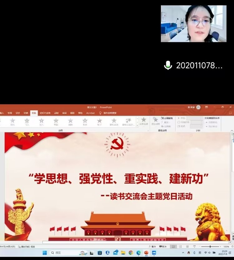 2023年7月8日晚20:00,为深入学习贯彻习近平新时代中国特色社会主义思想,土木员工第八、第九党支部利用腾讯会议开展了“学思想、强党性、重实践、建新功”读书交流会主题党日活动,原原本本学习中央主题教育制定学习材料,做到真学、真懂、真信、真用,在以学铸魂、以学增智、以学正风、以学促干方面取得实实在在成效,不断夯实团结奋斗的思想政治基础。土木员工第八、第九党支部的全体党员同志参与了本次学习活动。