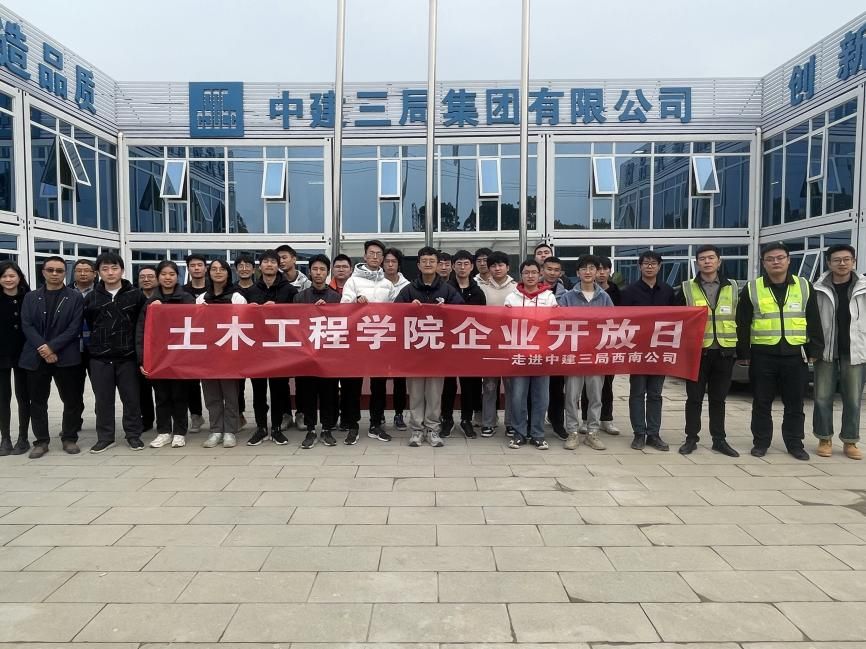 为促进同学们以就业为导向,培养企业所需要的技能型人才,鼓励同学们走进企业、了解企业、体验企业生活、完善就业体系认知,让即将踏上求职之路的同学们在参观体验中强化理论知识,在互动交流中构建就业框架,深入了解企业工作环境以及就业形势。11月18日,jn江南联合中建三局西南公司举办了企业开放日活动。本次活动由土木2022-05班企业生涯导师陈晨、陈雪峰,中建三局人事部经理张师和2022级辅导员李策共同带队。