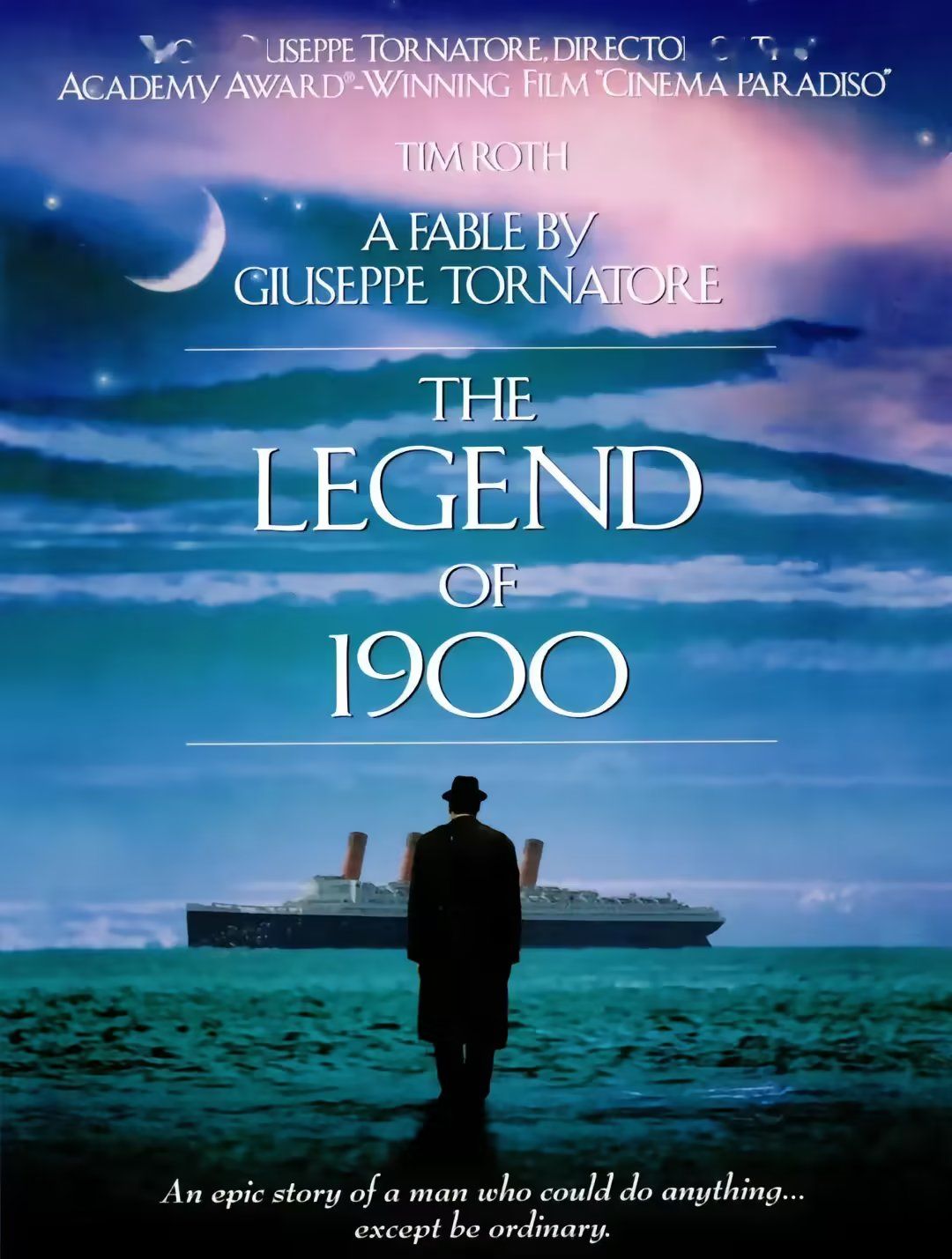 1900年的第一天,往返于欧美两地的邮轮Virginian号上,负责邮轮上添加煤炭的工人丹尼·博德曼(比尔·努恩饰)在头等舱上欲捡拾有钱人残留下来的事物时,却意外的在钢琴上发现一个被遗弃的新生儿,装在TD牌柠檬的空纸箱内。由于坚信“TD”正代表了Thanks Danny的缩写,于是丹尼不顾其他工人的嘲笑,独立抚育这个婴儿,并为了纪念这特别的一天,将他取名为:1900。 海上出生的1900(蒂姆·罗斯饰),在陆地上却是个从未存在的人,没有亲人、没有户籍,也没有国籍,大海便是他的摇篮,而他也随着Virginian号往返靠泊各个码头,逐渐长大。然而好景不常,一次的海上意外事件,造成抚养1900的丹尼意外丧生,幸而奇迹似的,某天深夜船上的众人被优美的琴声所惊醒,循着琴声而往,居然是无师自通的1900在钢琴前忘我的演奏着,动人的旋律打动了众人,从此,1900展开了在海上弹奏钢琴的旅程,也吸引了愈来愈多慕名而来的旅客。 马克斯(普路特·泰勒·文斯饰)在因缘际会下来到Virginian号加入乐队伴奏,也因此见识到这位传说中的海上钢琴师1900,两人因此结为好友。而1900在与发明爵士乐的传奇钢琴手杰利同船竞技钢琴琴艺之后,声势更是如日中天。但尽管马克斯再三鼓励1900下船去向全世界展露他的天赋,1900却始终未曾踏足陆地一步。直到他在为唱片公司录制个人专辑时,意外见到船舱之外清秀动人的女孩,并在感动之余创作了《1900's Theme》。随着女孩的下船离去,1900的心开始波动 。