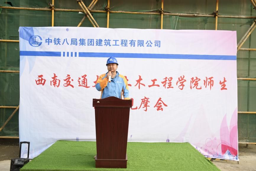 实操教学结束后,学院师生前往中铁八局建筑公司黑龙滩项目驻地进行校企座谈交流。本次座谈会由中铁八局建筑公司人力资源部部长张丹主持。张丹部长表示,此次主题党日活动暨企业开放日活动在于让同学们通过参观交流真正的了解企业、感受企业氛围,希望通过此次活动,同学们能够对施工单位企业有全新的认识,打破信息壁垒,更好的规划个人未来发展。