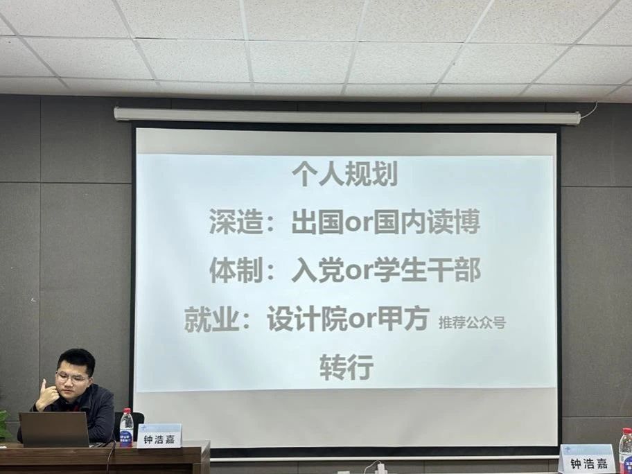 对于研究生同学来说,提前规划未来方向也是十分必要的。我们在毕业时可能会选择继续读博深造、进入体制内工作或者直接就业。如果选择出国就要提早准备雅思和托福,还要有小论文的发表;如果选择在体制内工作就要尽快入党,多参加员工工作;在就业方面师兄也给大家推荐了一些与土木相关的就业信息公众号供大家参考。
