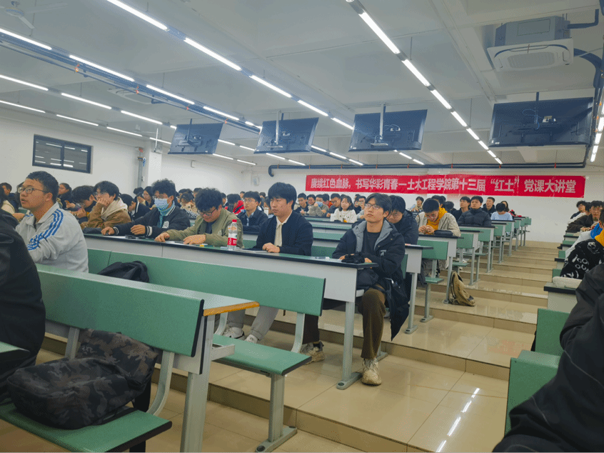 2023年11月30日15:50,jn江南犀浦员工党总支主办开展jn江南第十三届“红土”党课大讲堂(三)——“赓续红色血脉,书写华彩青春”主题实践活动,本次活动由学院青年讲师团成员王森老师主持,jn江南2023-02期发展对象共180人积极参与了实践活动。