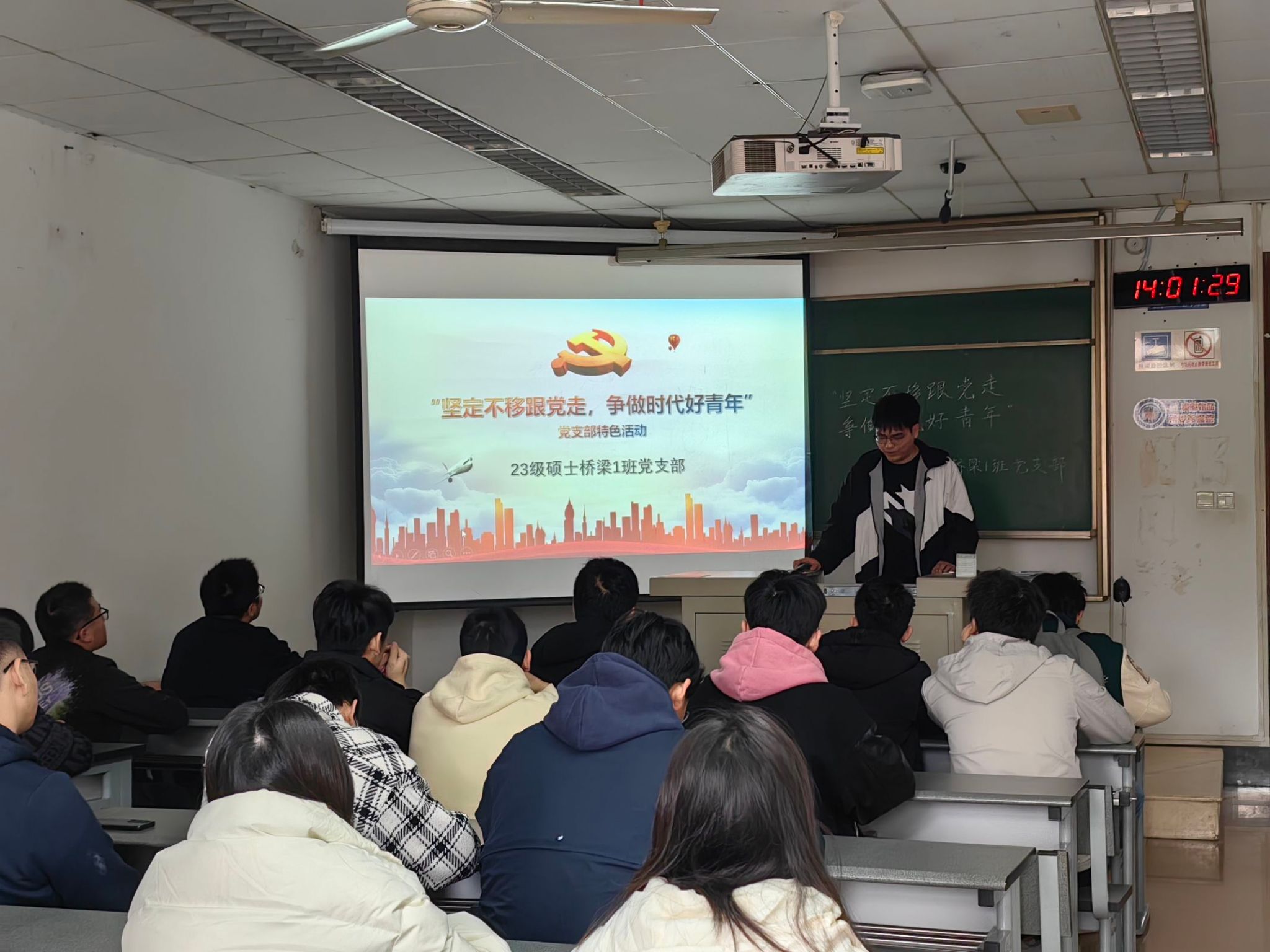 为了积极响应党中央提出的“交通强国”战略新纲要,履行新时代赋予交通人的历史使命,激励交大学子勇担时代重任,积极投身交通科技事业发展、厚植为中华民族伟大复兴而不懈奋斗的使命担当,2023年11月30日下午,2023级硕士桥梁1班党支部依托江南体育官方网站“坚定不移跟党走,争做时代好青年”校级示范性员工党支部特色活动,围绕交通强国、科研报国的主题,开展“强国建设,交通先行”党支部系列活动。