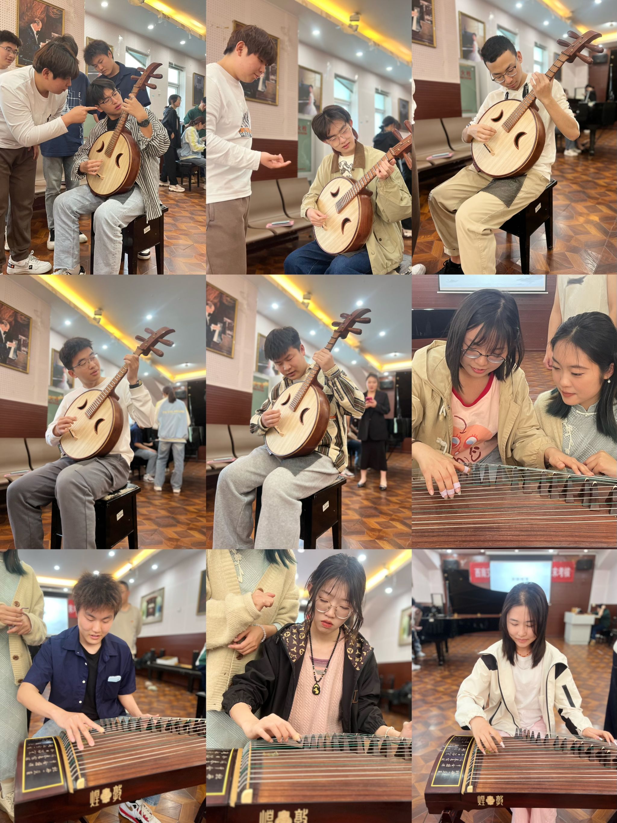 在中华文化的历史长河中,传统乐器一直扮演着不可或缺的角色,古筝、琵琶、阮等传统民乐乐器,不仅代表了中华音乐文化的精髓,也体现了古人对于音乐的深刻理解和无限创意。活动伊始,人文学院的郭佳同学向“红志班”学员们介绍了古筝的起源与发展。早在公元前5世纪至公元前3世纪的战国时代,古筝在秦国一带广泛流传,故得名秦筝,距今已有2500余年的历史;此后,又逐渐流传到了河南、山东、广东、浙江、内蒙古等地。由于历史的变迁和地域的影响而造成了地方风格、演奏技法等的不同,并因此形成了当今各种不同的古筝流派,使古筝的发展日趋繁荣。在介绍完古筝的起源后,郭佳同学首先为学员们带来演奏曲目《婵歌》,《婵歌》以古代才女貂蝉为主题,演奏者用音符塑造出貂蝉曼妙的舞姿。随后,邢芳菲同学带来演奏曲目《海之波澜》,《海之波澜》则描绘出海鸥飞翔、惊涛拍岸的情景。古筝演奏者们在黄维同学的钢琴伴奏下,以精湛的技艺将古筝的每一个音符都演绎得淋漓尽致,学员们仿佛穿越千年,置身于古代宫廷的雅乐之中。古筝作为中国传统乐器的代表之一,以其独特的音色和演奏技巧,展现了中国民乐的深厚底蕴。