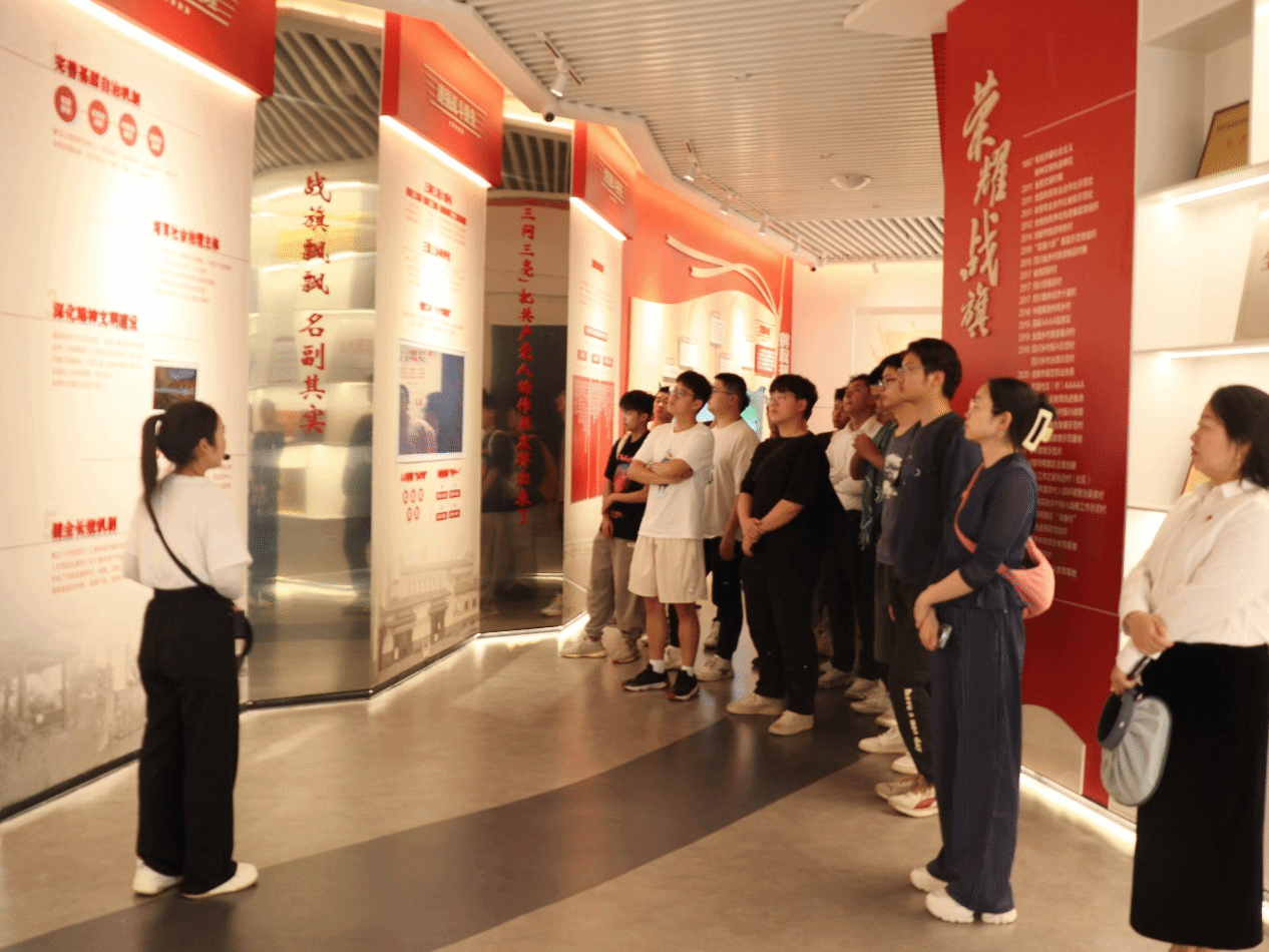 在食用午餐并短暂休息后,大家前往战旗村进行主题党日活动,在工作人员的带领下,同学们了解到了战旗村的致富之路,参观了村中的产业生产链,受到了许多启发。