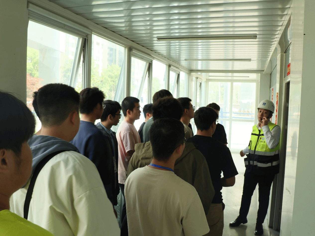 随后,同学们分成两组前往工程现场进行参观,了解项目施工的大致情况,项目现场负责人为同学们介绍了施工概况,讲解关键施工技术,并针对同学们的疑惑进行一一解答。
