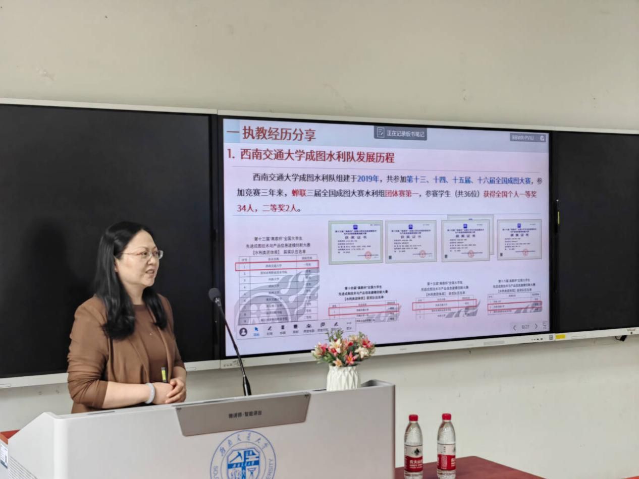 活动中,赵莉香教授首先向同学们介绍了工程制图领域的一项重要赛事——成图大赛。她通过讲述学校在此赛事中取得的辉煌成就以及备赛期间的点滴故事,激发了同学们对竞赛的浓厚兴趣。同时,她还强调了在学习过程中遇到困难时及时与老师沟通的重要性,鼓励同学们勇于向老师寻求帮助。