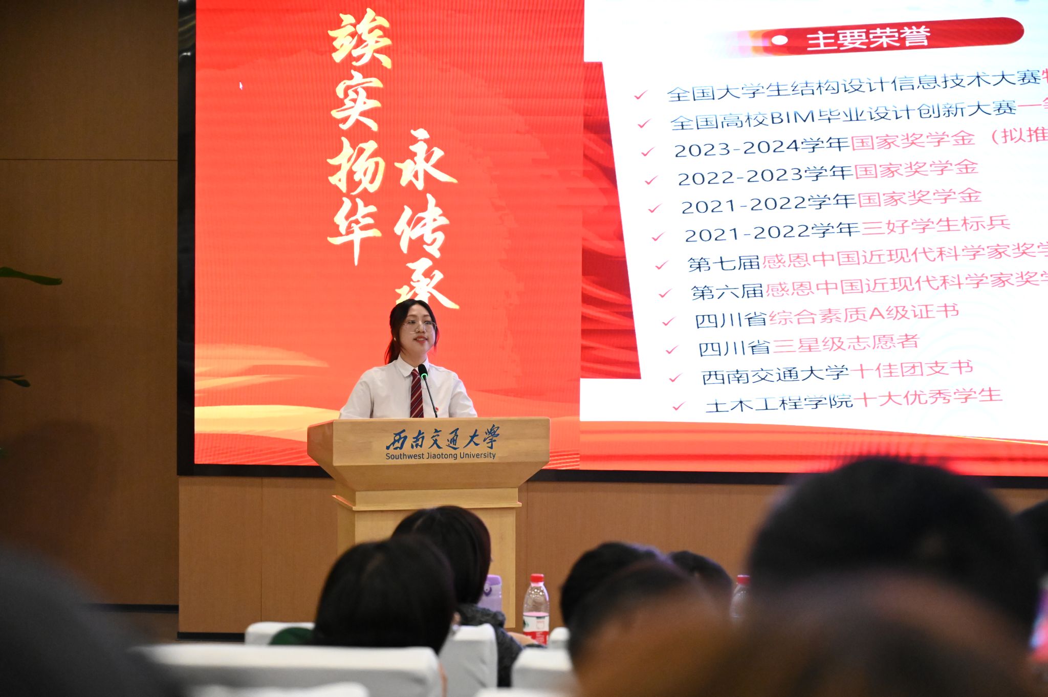 2024年11月18日下午14:00,“竢实扬华奖章”评选展示会在犀浦校区图书馆一号报告厅举行,jn江南2021级本科生肖岚芝同学和赵子强同学作为候选人参与答辩。其中,肖岚芝同学成功当选为2024年“竢实扬华奖章”(本科生)拟推荐人选。