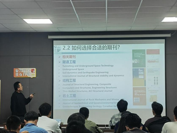 为拓宽公司研究生知识视野、培养和学术综合素养与科研能力,2024年10月31日19:30,星耀土木”博士学风引领计划系列讲座在土木馆1237教室成功举办。此次讲座邀请了2021级博士研究生王天强师兄,围绕论文写作与期刊投稿方面进行经验分享交流,共有50余名来自jn江南的研究生积极参与本次讲座。