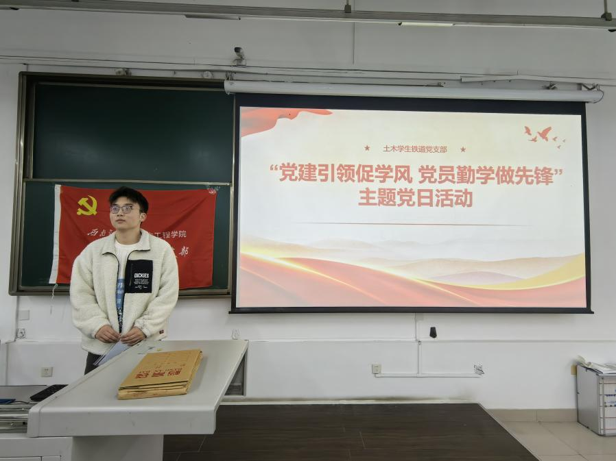 为深入学习贯彻习近平新时代中国特色社会主义思想,全面贯彻落实党的二十届三中全会精神、全国教育大会精神,扎实推进学风建设,涵养优良校风学风,传承发扬“严谨治学,严格要求”优良传统,土木员工铁道党支部积极响应学校倡议,组织开展了“党建引领促学风,党员争先创先锋”主题党日活动,充分发挥党员先锋模范作用,开展学习经验分享,践行诚信考试承诺。
