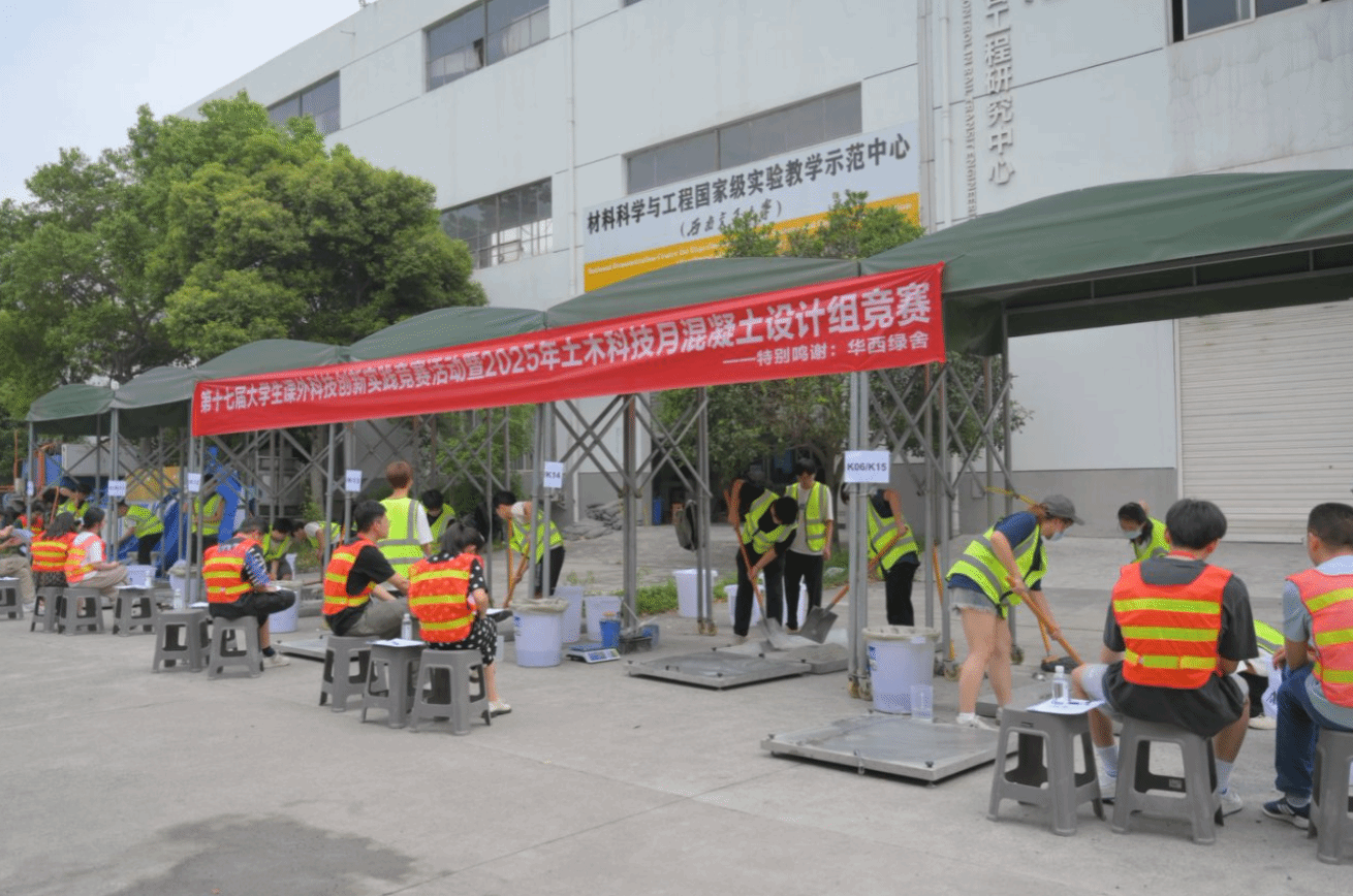 5月17日上午,在四川华西绿舍建材有限公司的大力支持下,2025年土木科技月混凝土设计组竞赛在江南体育官方网站土木工程实验教学中心圆满落幕。本次大赛以“C30自密实混凝土的配制与性能试验”为主题,聚焦混凝土性能与现场施工环境的适配性。