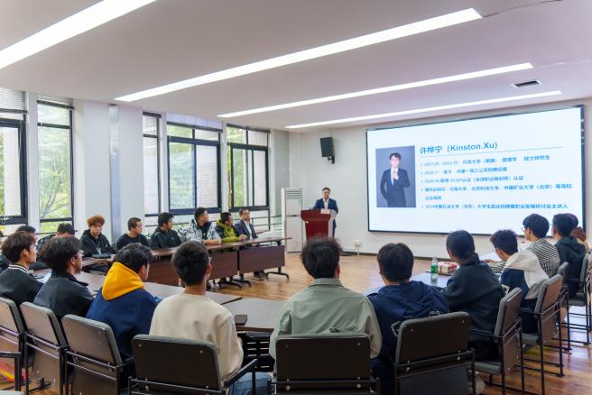 在交流互动环节,参会员工围绕实习机会获取、在校学习重点选择等问题踊跃提问。许桦宁导师秉持负责的态度,运用行业专业知识和实践经验,针对员工提出的问题予以细致解答。