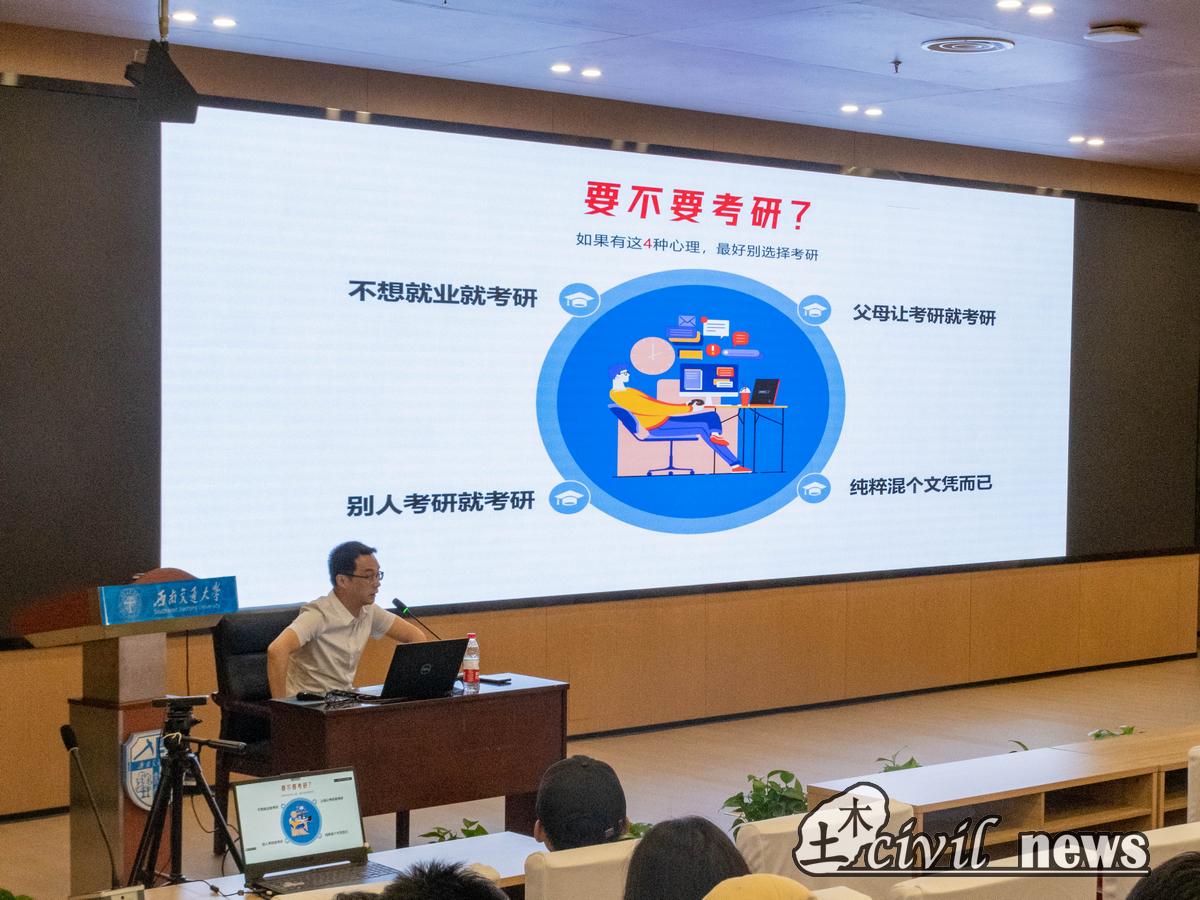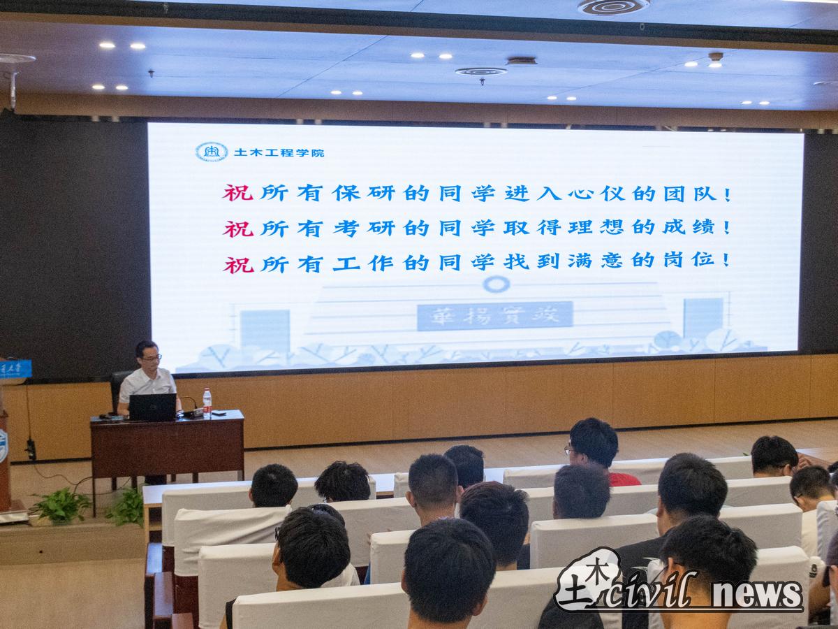 就业是最基本的民生,就业稳则民心稳、社会稳。学校、学院高度重视就业工作,深切关怀学院毕业生即将面临的青年就业问题。围绕促进学院应届生就业选择问题,土木工程公司党委副书记周曦详细阐述了应届生毕业将面临哪些具体选择,介绍了就业、保研、考研等方面的详细调研数据。他指出,不论员工选择就业创业还是选择升学深造,学校和学院始终会为员工提供支撑、保驾护航。同时他指出,员工做出未来人生规划的选择之后就要坚定不移地为之努力。此外,周曦副书记还介绍了考研方面相关注意事项。