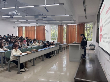 活动伊始,高润秋同志通过分享一张张历史图片和一段段珍贵影像,为支部成员生动展现了从虎门销烟到五四运动中华民族不屈不挠、奋勇抗争的爱国历程;然后,高润秋同志通过详实的数据与案例,介绍了新时代中国在科技、经济、文化等领域取得的辉煌成就,让大家深刻感受到了祖国的日益强大。在讲解过程中,高润秋同学还结合自身学习与生活经历,阐述了新时代青年如何践行爱国主义精神的具体路径。她提到:“我们青年学子要将个人理想融入国家发展大局,在学习专业知识中锤炼本领,为强国建设积蓄力量”。精彩的讲解引发台下支部成员的强烈共鸣,现场不时响起热烈掌声。