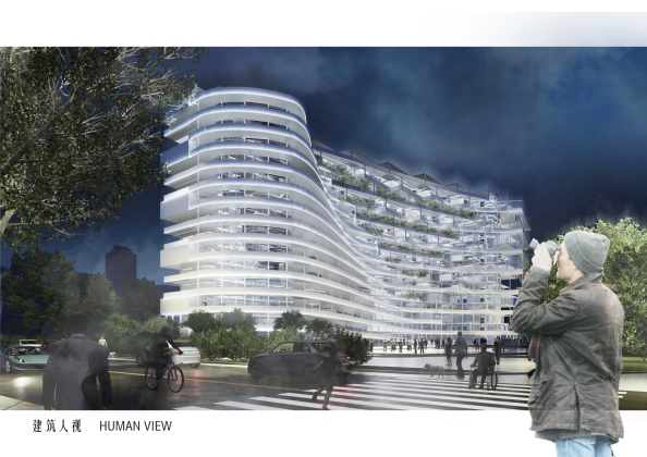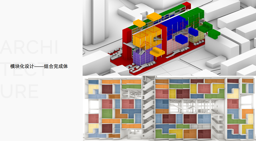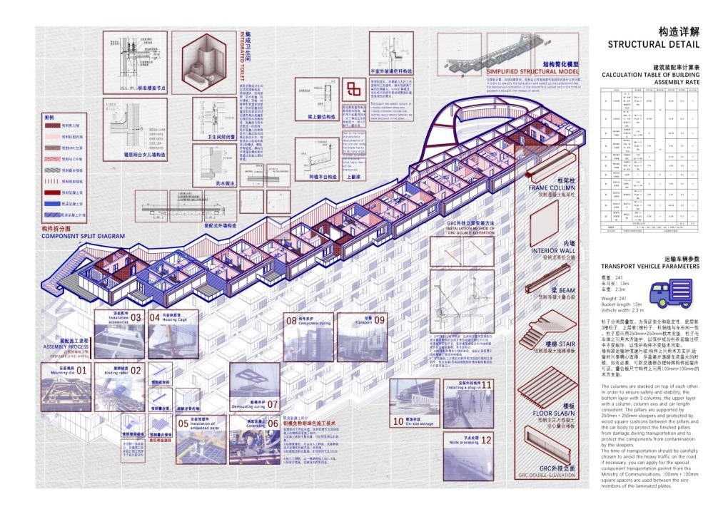 与垂直农场相结合的装配式混凝土住宅这一作品的灵感来源于现如今我国的农业状况。近年来国家城市化率升高,农田比重下降,导致城市缺少绿地,乡镇的农作物缺少供应链。而纵观我国农业生产发展史,以前农场主要是水平方向上的发展,仅在地面上进行农耕作业,进入工业时代发展后,由于大量开采和硬化地面导致绿化面积急剧减少和城市用地紧张,针对这样的现状已经提出了新型的农作业方式为垂直农场,参赛队员们在这基础上提供一种新型的城市居住模式,将农场与住宅相结合,意在发挥出住宅-农场一体的经济效益及优势。