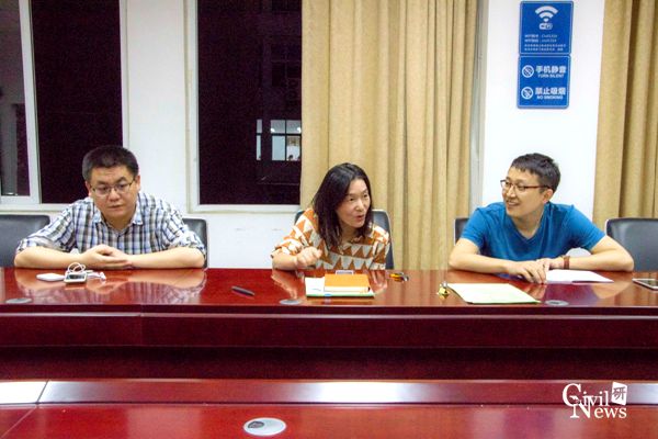左为牛金虎学长,中为车小洁老师,右为张列学长