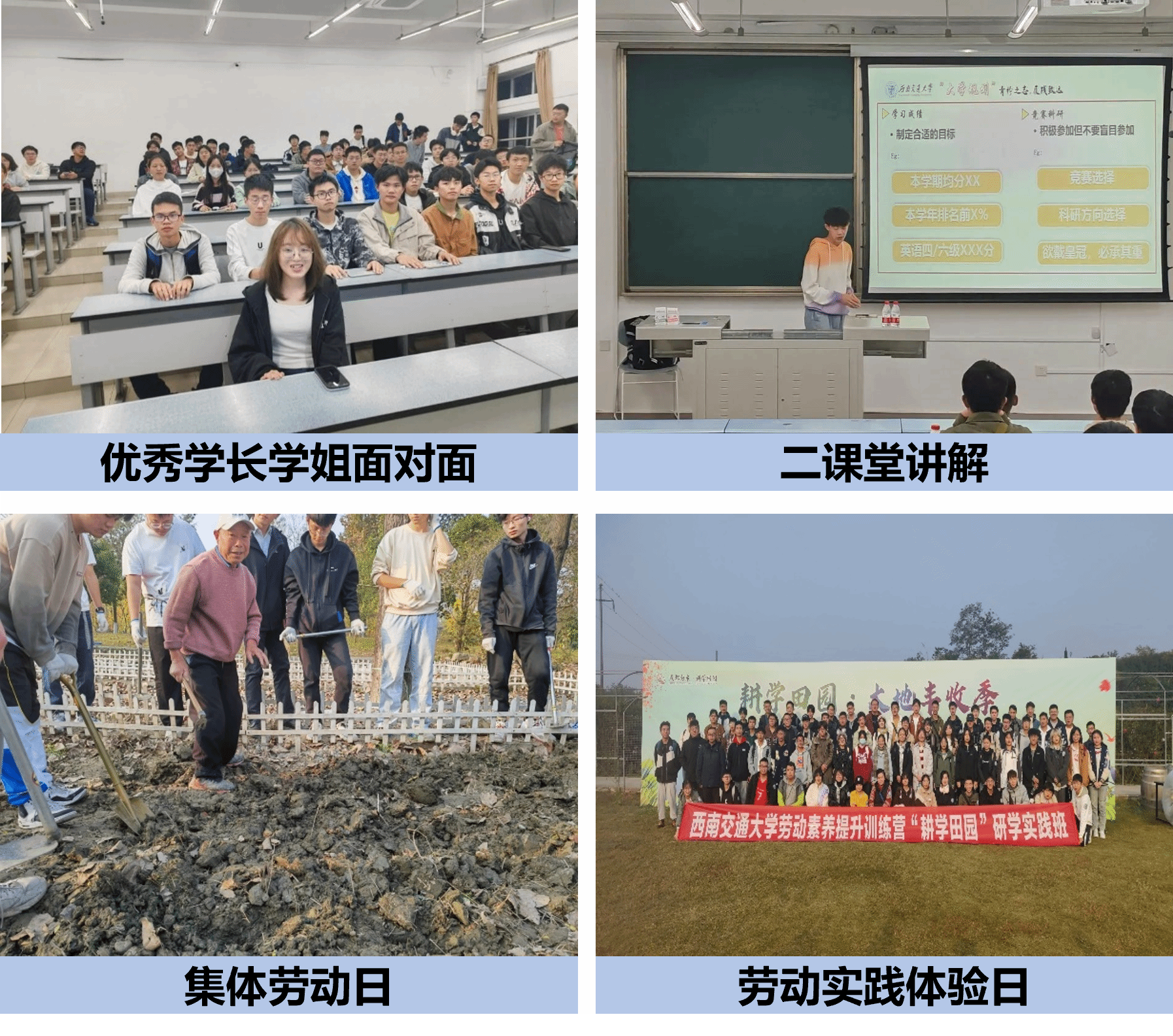 榜样引领,学院开展了优秀学长学姐面对面系列活动,搭建了朋辈交流平台,让新生近距离学习了先进榜样人物;劳动育人,在劳动中创造幸福,学院积极参与开展了2次新生劳动研学实践活动,此外新生年级首次设置劳动与体育委员来组织开展班级劳育工作,在铸造良好品行上发力,践一场“红行”。