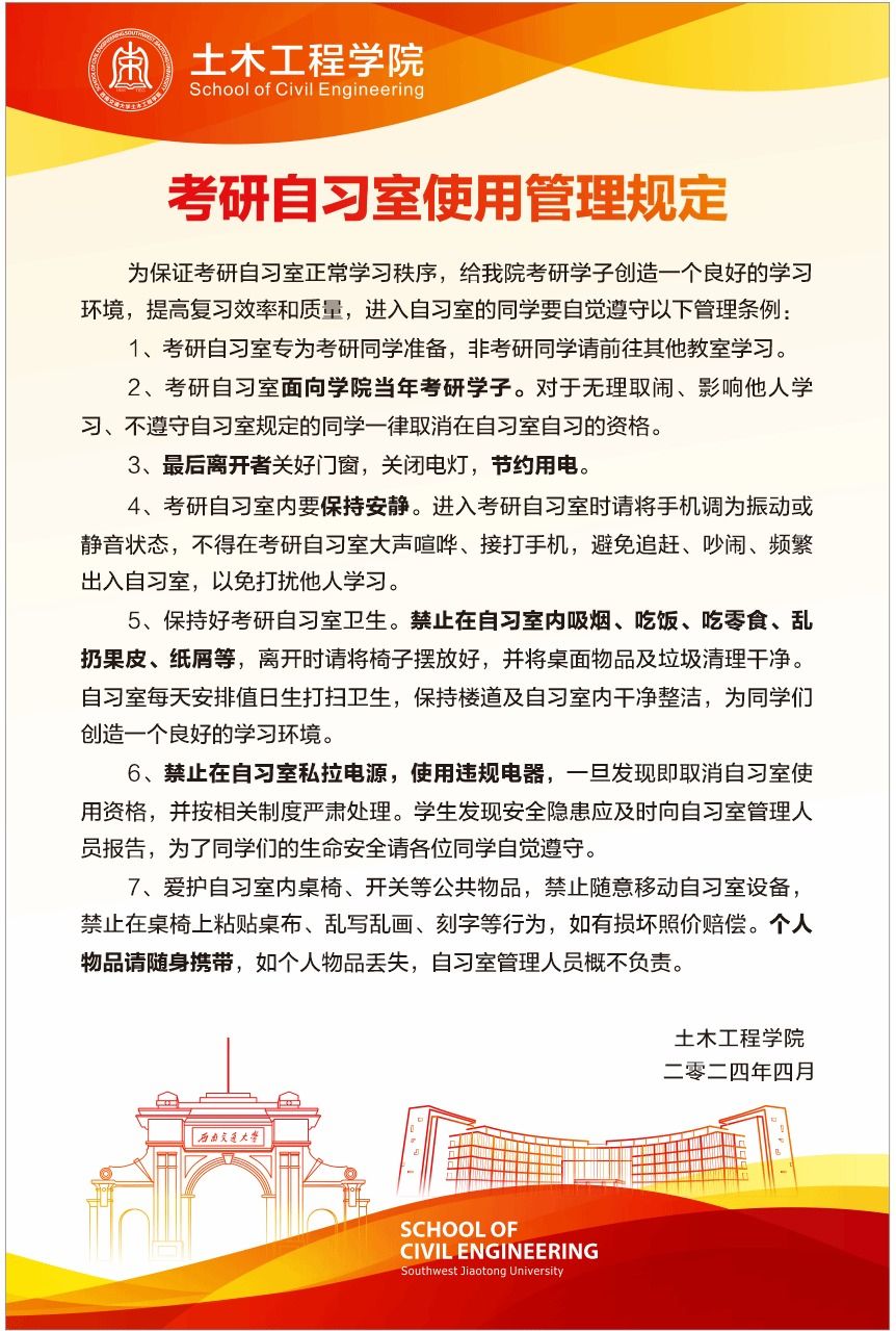 特别注意:进入考研自习室必须严格遵守考研自习室管理规定,相关管理规定见附件1。
