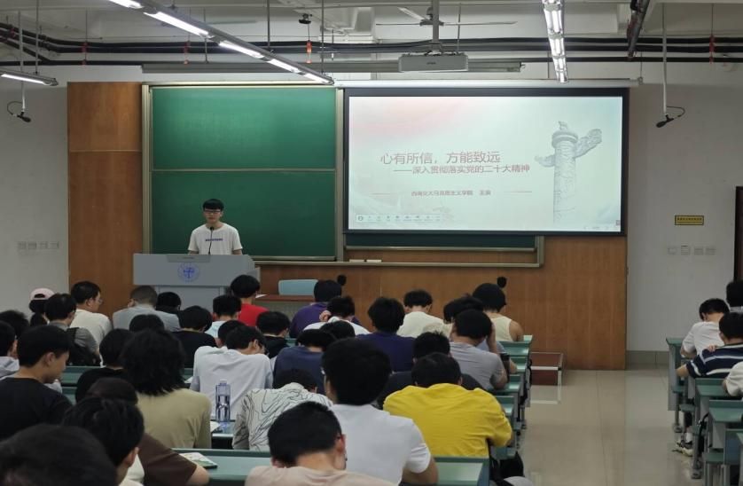 随后,王浪博士深入浅出地剖析了党的二十大报告,精心挑选诸如“马克思主义中国化时代化的新境界”、“新时代中国共产党人的历史使命”等核心章节的十五个要点,以精准凝练的方式向在场的所有入党积极分子进行了全面透彻的阐释,引领大家更深层次地领悟报告的精髓。