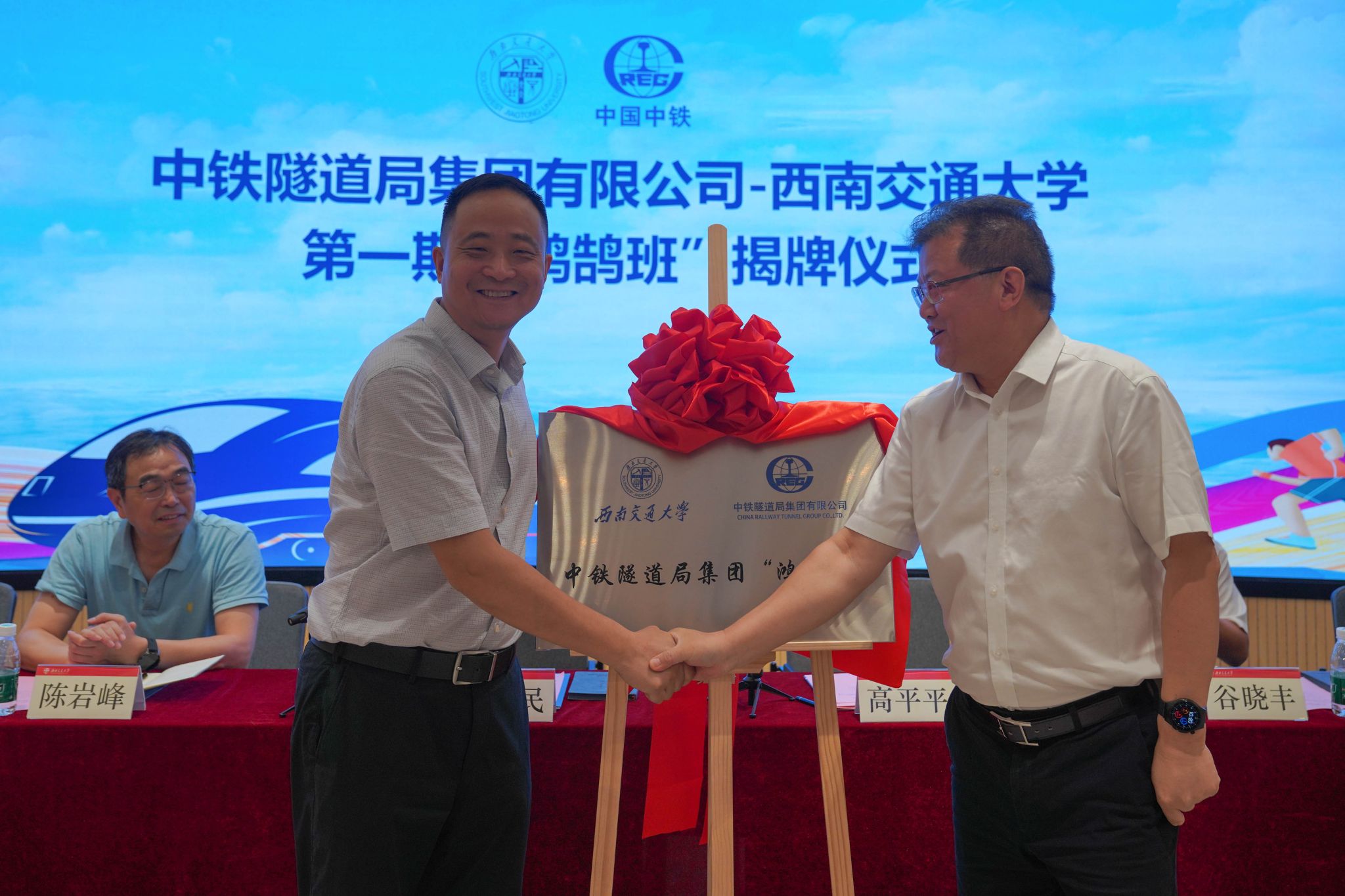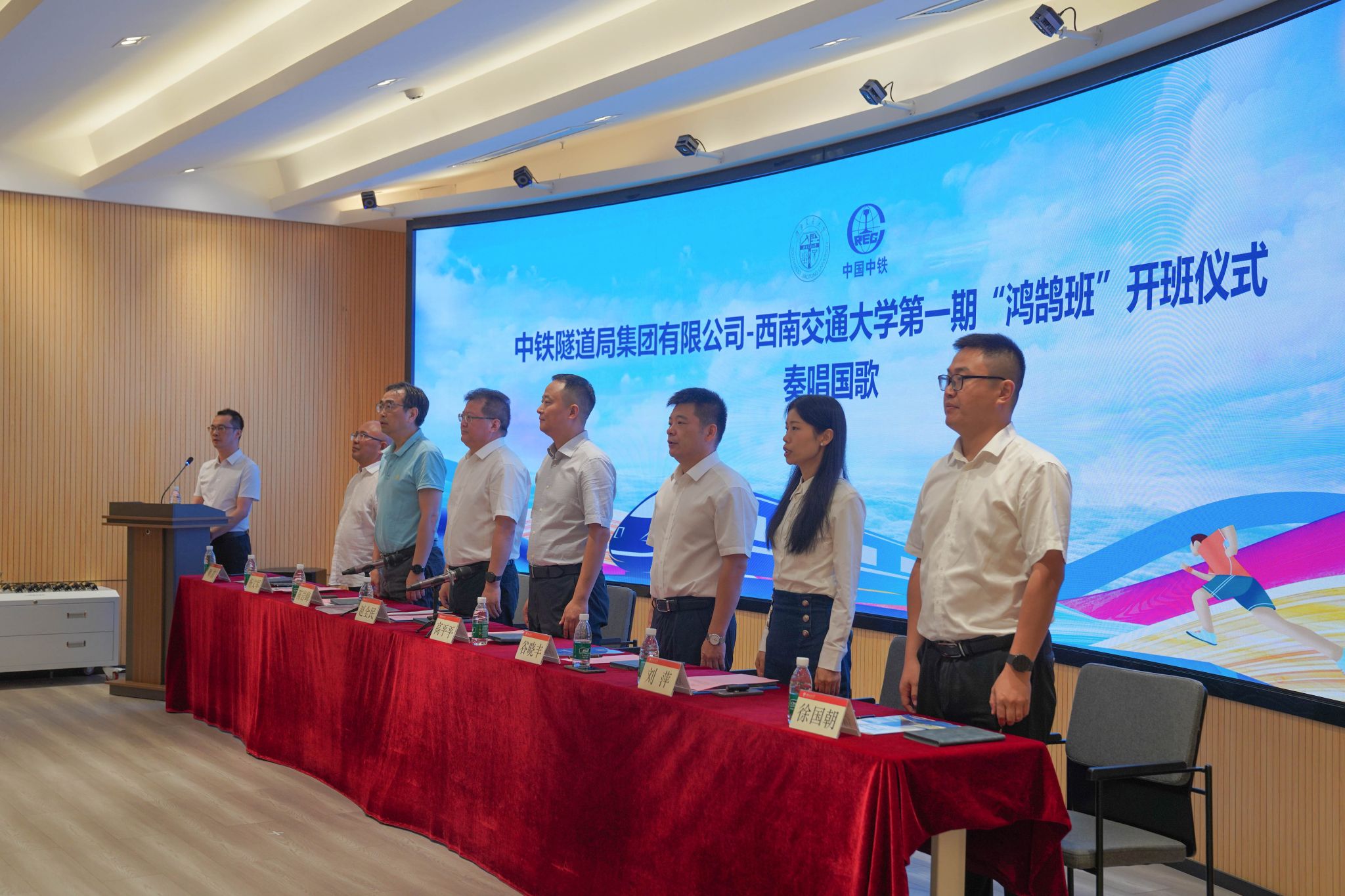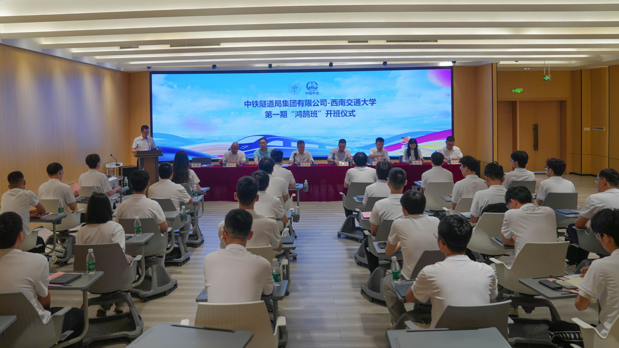 为积极贯彻落实新发展理念,增强在服务国家战略和区域经济发展中履行高水平科技自立自强的使命担当,促进科教融合、产教协同,推动毕业生实现更充分、更高质量就业。2024年7月6日上午,中铁隧道局—江南体育官方网站第一期“鸿鹄班”开班仪式于犀浦校区智能虚拟仿真实验教学中心隆重举行。中铁隧道局集团党委常委、副总经理赵全民,集团人力资源部副部长谷晓丰,一处副总经理杨文军,一处人力资源部部长徐国朝;江南体育官方网站党委副书记高平平,人才招聘处处长、员工办主任陈岩峰,人才招聘处副处长、土木工程公司党委副书记周曦,jn江南团委书记刘萍共同出席本次仪式。本次仪式由周曦副处长主持。