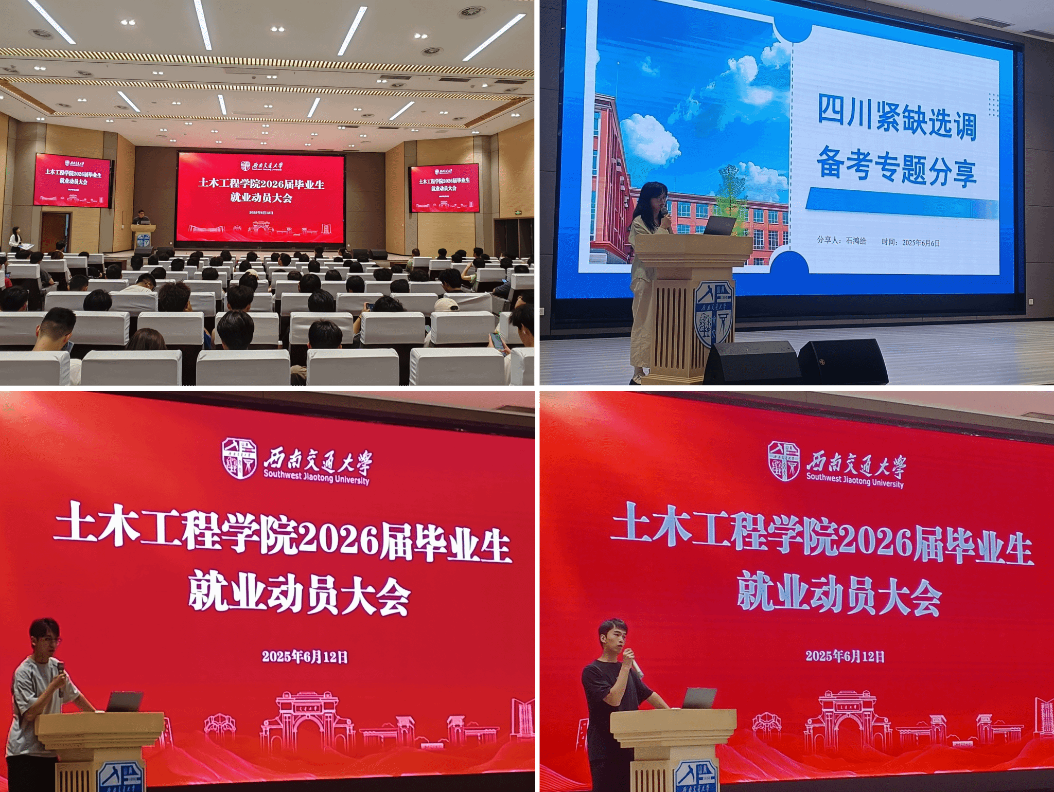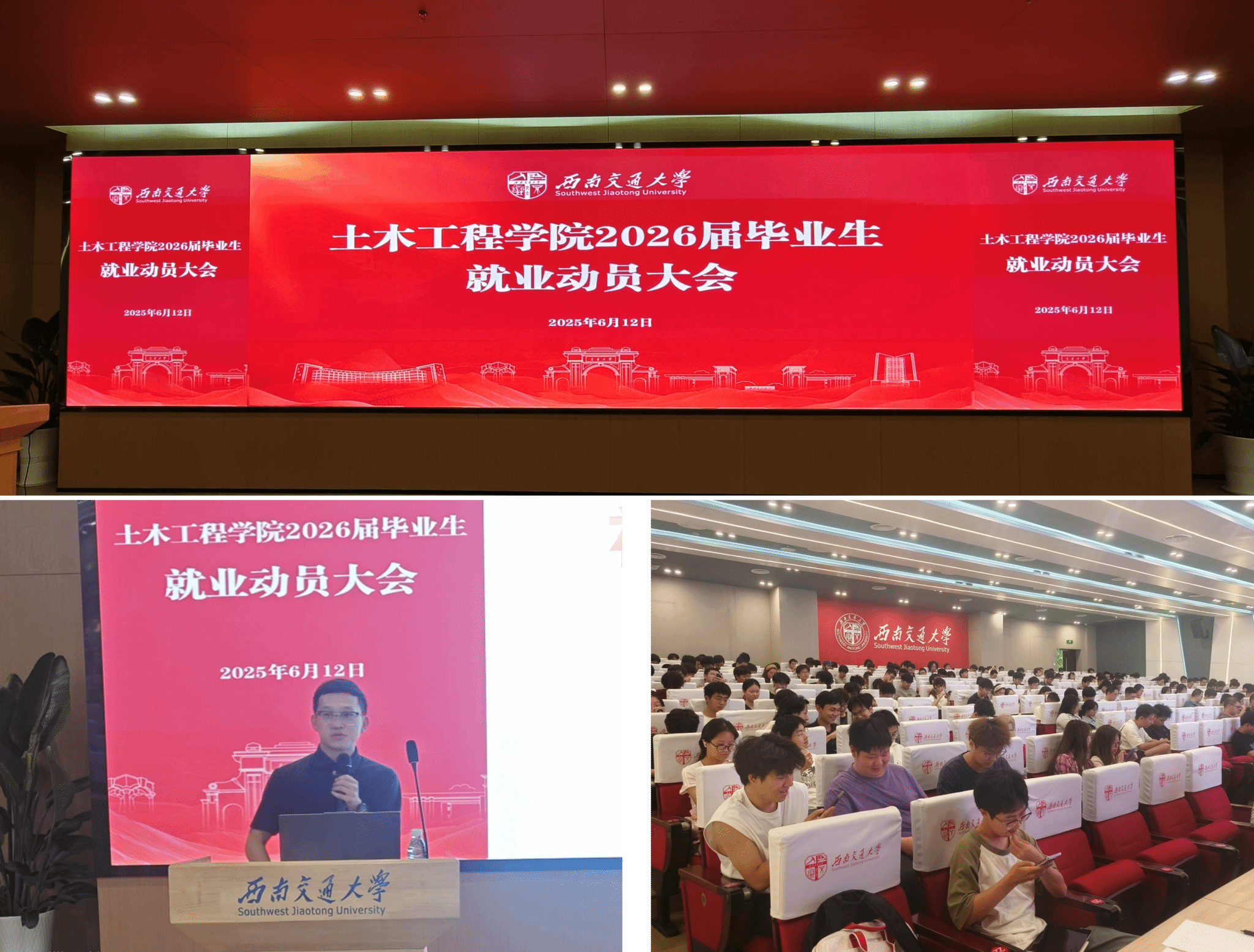 为深入贯彻落实教育部关于做好高校毕业生就业工作的指示精神,扎实推进学院“三全育人”工作体系建设,公司于6月12日晚精心组织举办了2026届毕业生就业动员大会。本次就业动员大会采用“分类指导、精准赋能”的工作思路,分设考研与就业两个专场,分别在图书馆一号报告厅和双一流会议中心203报告厅同步举行,为不同发展方向的毕业生提供针对性指导。