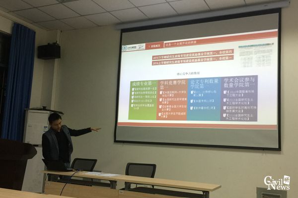 2015级隧道专硕1班在班长周平的带领下,全班同学齐心协力,以班级实力及整体风采博得“校级先进班集体”申报的资格。作为jn江南唯一进入学校优秀班集体申报的2015级硕士研究生班级,班级同学乘胜追击,在申报前召开全体会议,统筹安排申报答辩事宜。首先,班长周平对本次班会主题做了简要介绍,对“校级先进班集体”资格申报工作中班级同学的付出做了肯定,并结合答辩现场各个班级的表现及所展示的内容进行了总结,对“校级先进班集体”申报工作进行了全局又细致的规划,从学习成绩、学术论文发表、学术会议参与程度、学科竞赛获奖、班级学风建设与文体活动、班级在学院及学校范围内的影响力等方面进行了阐述。