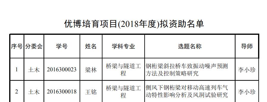 江南体育官方网站2018年优博培育项目拟资助人员名单公示