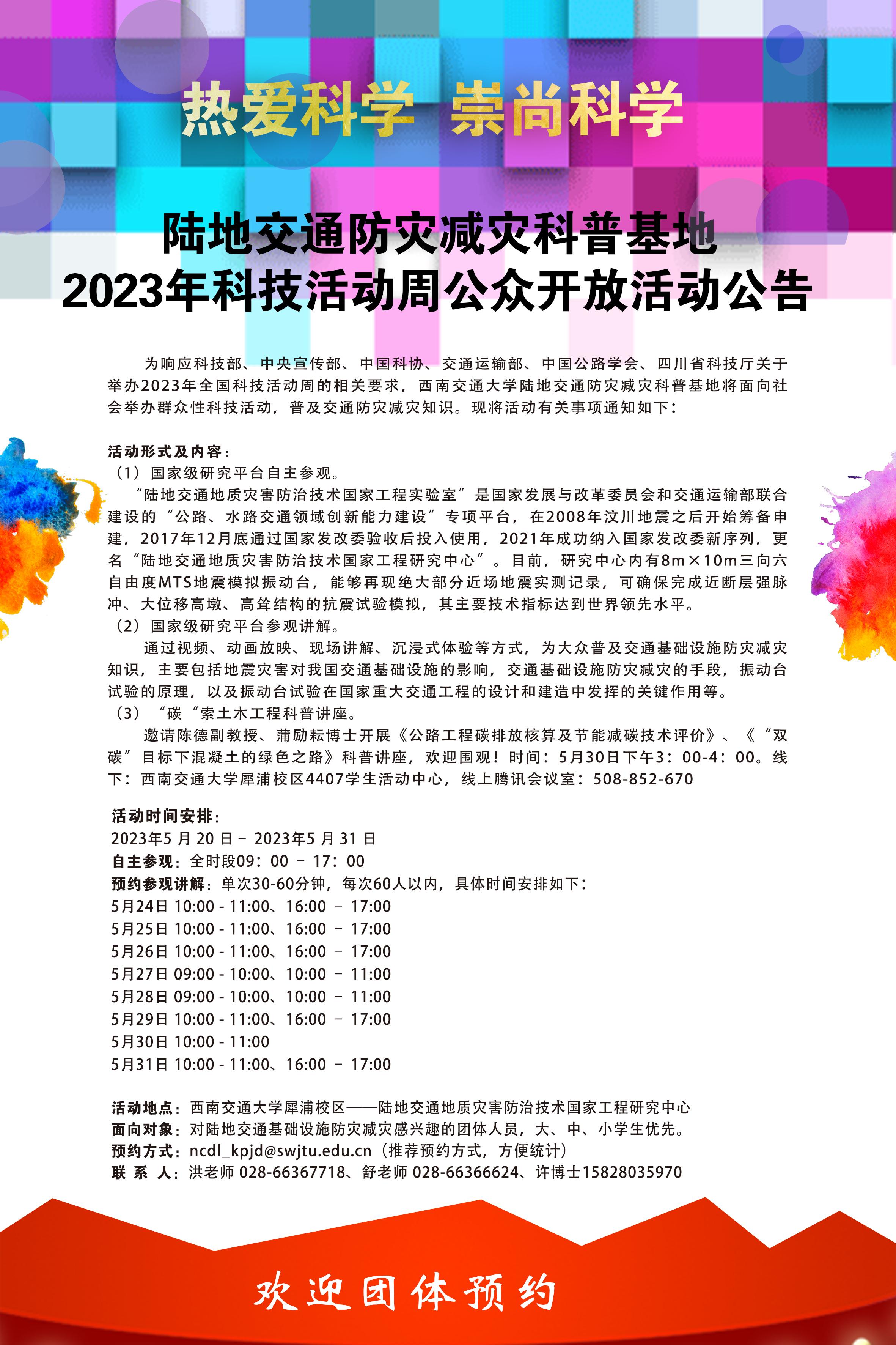 陆地交通防灾减灾科普基地2023年科技活动周公众开放活动公告