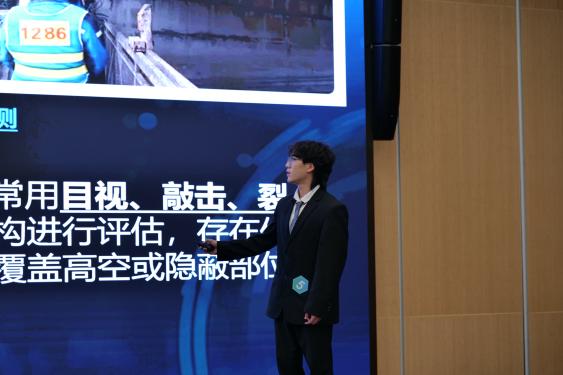决赛现场,20位选手们大显身手,各展风采。有的以悉尼海港大桥为例,揭秘跨越数年的力学奇迹;有的拿出精心制作的模型道具,阐释智能建造中3D打印技术如何赋能未来人居……在主题多样、特色鲜明的展示中,选手们思路清晰,用生动风趣的语言深入浅出地讲解知识点的原理、应用及优势,展现出智能建造与智能运维的科技魅力。