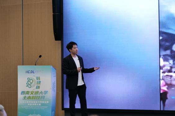 活动伊始,科研院副经理张兴博上台在致辞中对本次比赛的主办方、承办方以及协办方的大力支持表示感谢。张兴博强调,西南交大一直遵循“科研报国”的宗旨,不断推进“科研反哺科普”等一系列活动,鼓励交大学子践行社会使命担当,希望同学们能够做“顶天立地的科学传播者"和"心怀家国的科技播种者”。双建公司董事长张建祥在发言中指出,企业的高质量发展离不开科技创新与科学普及的双轮驱动,此外还肯定了西南交大在交通科技领域的深厚积淀以及在人才培养上的卓越成就,表示未来会进一步深化与高校的产学研合作,推动科学知识转化为生产力,为社会安全和行业发展贡献力量。随后,郑江书记代表学院致辞。她强调,本次大赛主题紧密结合学院特色,通过科普讲解,讲述科学,诠释万物,有力激发老员工创新思维,提升科学素养与实践能力,以此大力弘扬科学家精神。希望本届大赛呈现一堂鲜活生动的“思政课”,把实现中国式现代化的建设场景搬到讲台、屏幕、田园和厂房,让同学们充分领略和感受我国科技发展的蓬勃力量;希望本届大赛的有序组织,成为锻造未来土木工程师的“练兵场”;希望以本届大赛成为一台“播种机”,在同学们心中播下做科学传播使者的种子,做爱科学、讲科学、学科学、用科学的践行者;希望本届大赛成为西南交大和四川双建联袂打造一座校企精准对接的“连心桥”,成为科普事业蓬勃发展的有力支撑,成为建设教育强国、实施科技强国战略的生动实践。她还表达了对所有提供帮助和支持单位及个人的感谢,并祝愿此次大赛圆满成功。