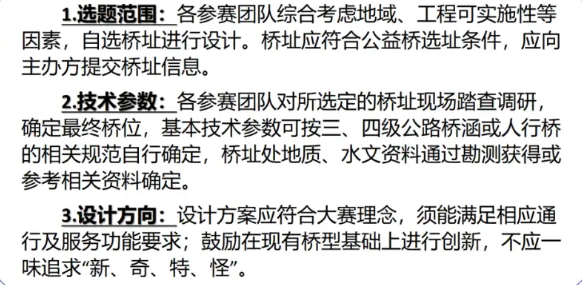 由各高校面向在校相关专业员工组建团队参赛,每支队伍员工3~5名,其中需包含土木工程研究生或高年级本科生至少一名,指导老师1~2名。每位员工只允许参加一个团队