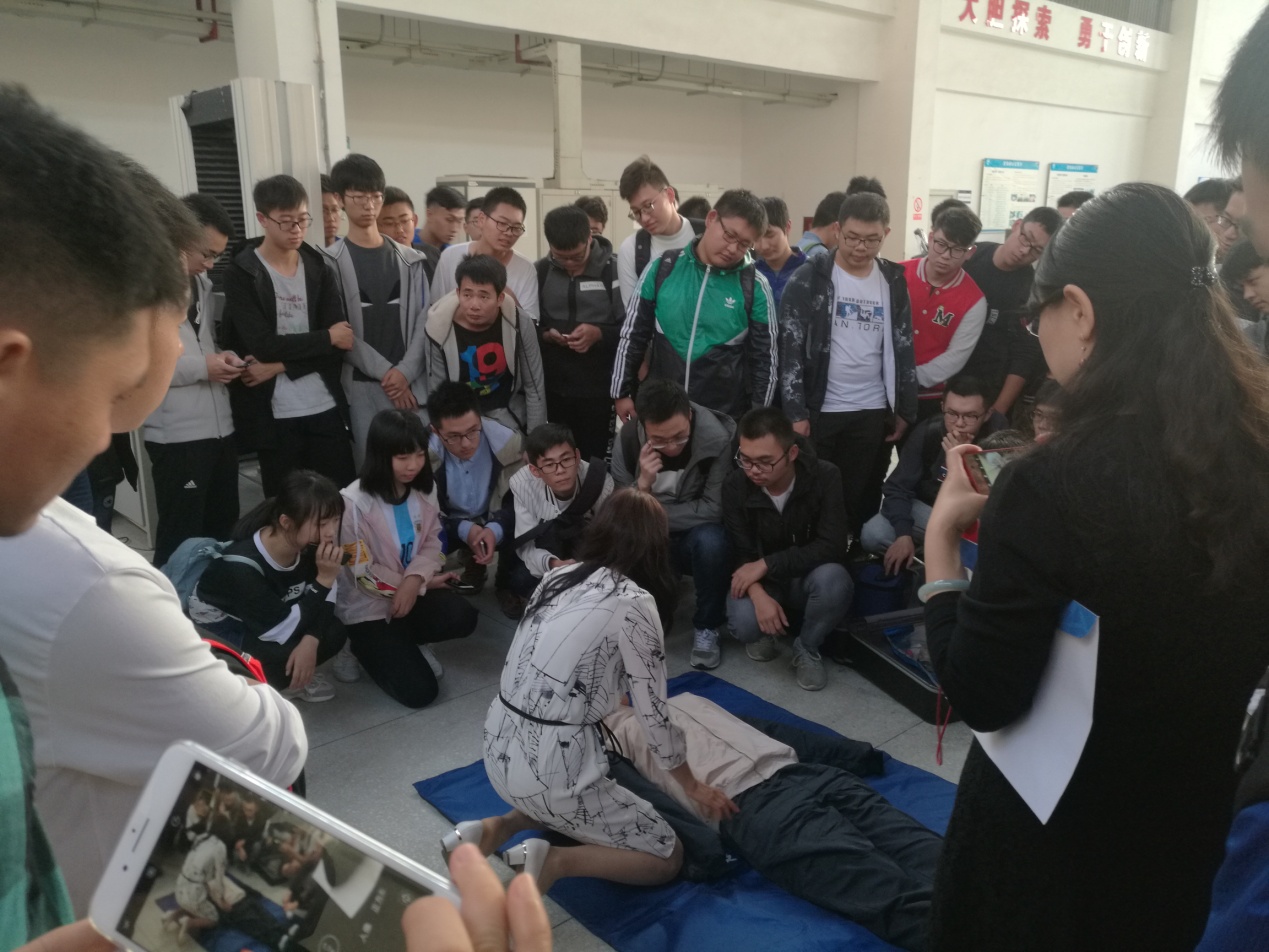 老师的课程吸引了到场的全体师生,她们将理论应用于实践,运用假人等进行实操,让各位师生受益匪浅。急救演练需要动手实践才有意义,这一点很感谢校医院的老师们的认真负责!