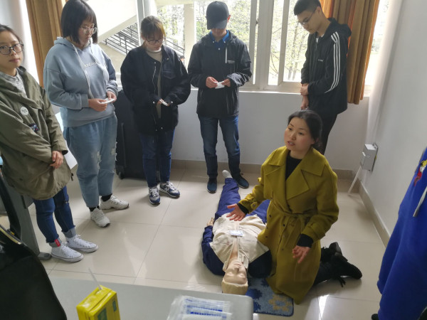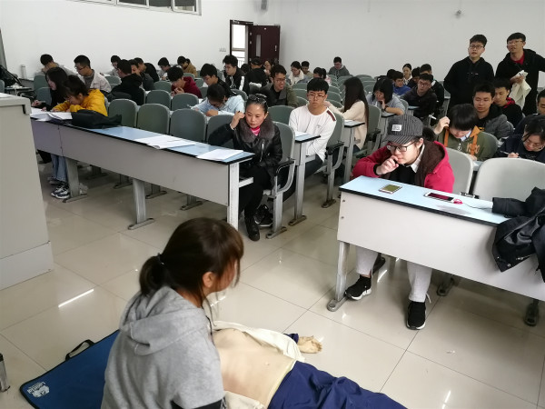 下午由郫都区红十字会付老师、黄老师和肖老师进行“心肺复苏术(CPR)”的实践教学,通过老师们用人体模特进行的演示示范,以及对同学们悉心指导,大家在一个下午的时间都掌握了“心肺复苏术(CPR)”这项实用的急救技能。