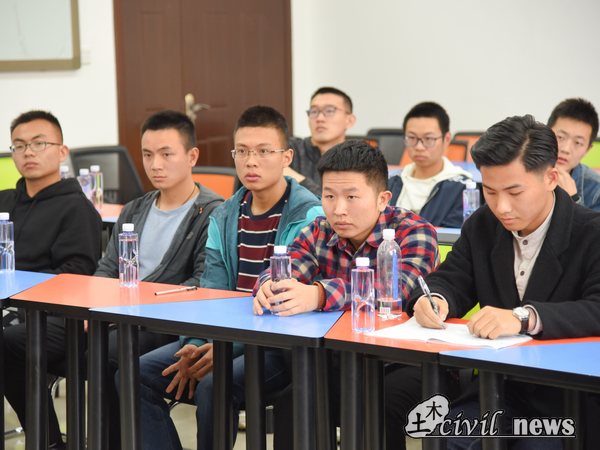 随后,辛代泗老师分享了自己的三点感想。第一,学会感恩。通过回忆自己从员工到在中铁二局工作这十六年的人生历程,他对同学们提出了感恩时代、感恩父母的要求。第二,认真工作,做一个不拼爹,靠自己的人。第三,吃苦耐劳。他强调到,独自在海外打拼必然要面临身心的挑战,国际工程班的同学们要以吃苦耐劳的品质迎接挑战。辛老师的一番话让在座的同学们受益匪浅。