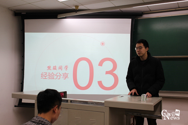 之后,由国家综合奖学金获得者仲恒师兄,为我们分享他读研一年多来的经验和学习方法。