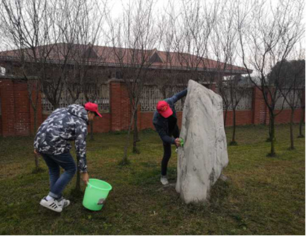 新学期伊始,春意尚未明朗,土木青协外联的小伙伴们就来到了江南体育官方网站犀浦校区的共青林石碑前,要为这经历了年月雕蚀的石碑换上新装。