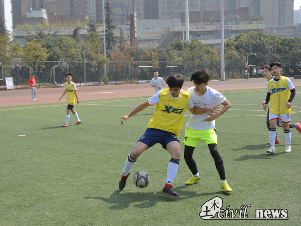 裁判员的哨声清脆,一声令下,彻底点燃了比赛场上的激情。赛场上的运动员们奋力拼搏,赛场下的助威人员也在呐喊加油。足球比赛向来以刺激紧张著称,为各自党支部加油的同学们都在目不转睛地看着场上的形势变化,生怕错过一粒精彩进球。