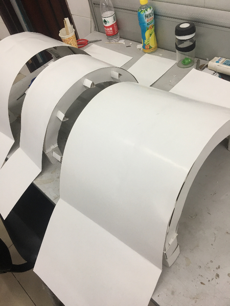 在仔细阅读比赛试题过后,对比去年的试题,今年的衬砌拼装模型难度加大了不少。但我们并没有因此而轻易放弃。而是努力查阅资料,看往年比赛的照片视频,学习大神做模型的方法。之后,将这些总结,并发挥我们的想法一起融入到我们的模型中。在一番讨论后,我们决定用九块衬砌进行拼装,榀与榀之间用三棱柱套筒进行连接,每榀由三块构成,立柱采用“米”字型结构,拱用双层并在内添加三棱柱。