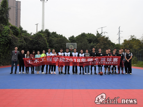 10月27日9点30分,jn江南2018年师生篮球赛在南区篮球场举行,参与此次活动的有上场的土木工程公司党委副书记李锦红,研究生团委副书记石莹,学院辅导员李裕老师、李德斌老师、谢宇航老师、魏欢博老师、任福老师,以及作为拉拉队在一旁观战的学院辅导员刘萍老师、黄雪娇老师、付真珍老师、向京华老师、熊麟老师、邓丽华老师。开赛前所有到场老师和院队的同学们共举印有“jn江南2018年师生篮球赛”的横幅合影留念。