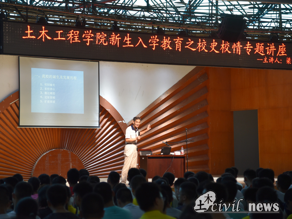 8月31晚7点,土木学院2018级全体新生来到二食堂三楼老员工活动中心聆听jn江南新生入学教育之校史校情专题讲座。主讲人梁锦堂老师声情并茂地为新生们讲解西南交大悠久绵长的历史及光辉过往。