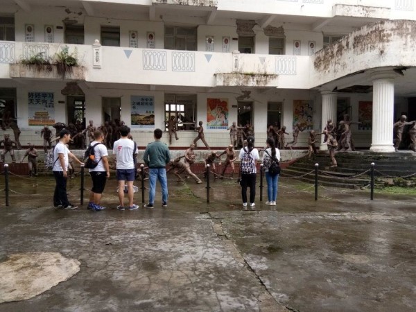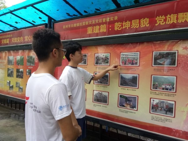 作为一个四川人,我相信没有谁会忘记08年的那次大地震,眼前的教学楼作为地震遗址被保存下来,看着的天心群雕的一座座栩栩如生的雕像,老师和员工的神情让我们联想到灾难来临时的恐惧。我们在宣传栏上看到了白鹿镇的重建历程。并采访了一位饭店老板,了解了在国家的大力帮扶下,白鹿镇是如何一步步复兴起来的,他讲的很激动,我们无不感受到一方有难八方支援的中华精神,也为他们感到衷心的快乐。