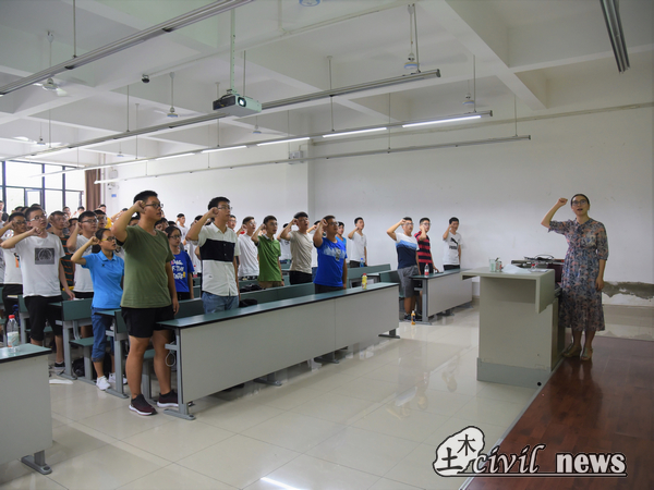 黄雪娇老师首先介绍了当代共青团的光辉历程,并以莫喀高铁青年突击队等三个与土木工程相关的实例,让同学们意识到作为当代青年应肩负的责任。黄老师带领大家一同起立宣誓,燃起了同学们作为共青团员的自豪感。在场同学激情澎湃,朝气蓬勃。随后黄老师指导同学们学习并合唱中国共产主义青年团团歌。同学们全体起立,歌声洪亮,展现了青年一代人的饱满热情。